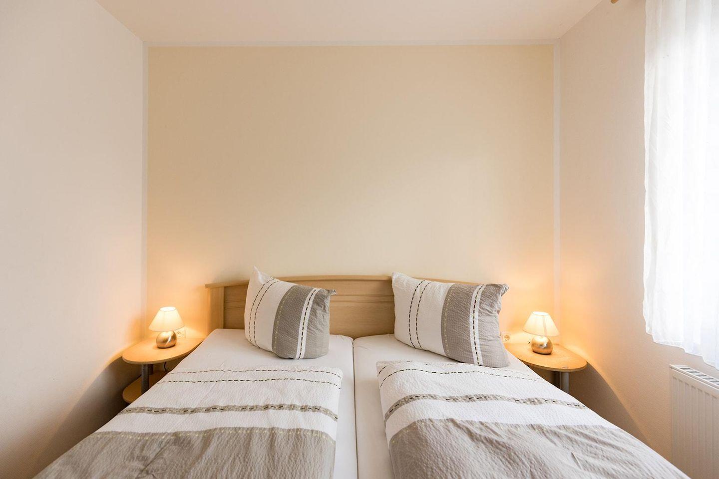 Die Wohnung verfügt über zwei komfortable Schlafzimmer mit hochwertigen Betten für erholsamen Schlaf. Ein modernes Badezimmer mit Dusche, Haartrockner und Kosmetikspiegel sorgt für maximalen Komfort. Dank allergikerfreundlicher Ausstattung kannst du dich rundum wohlfühlen.