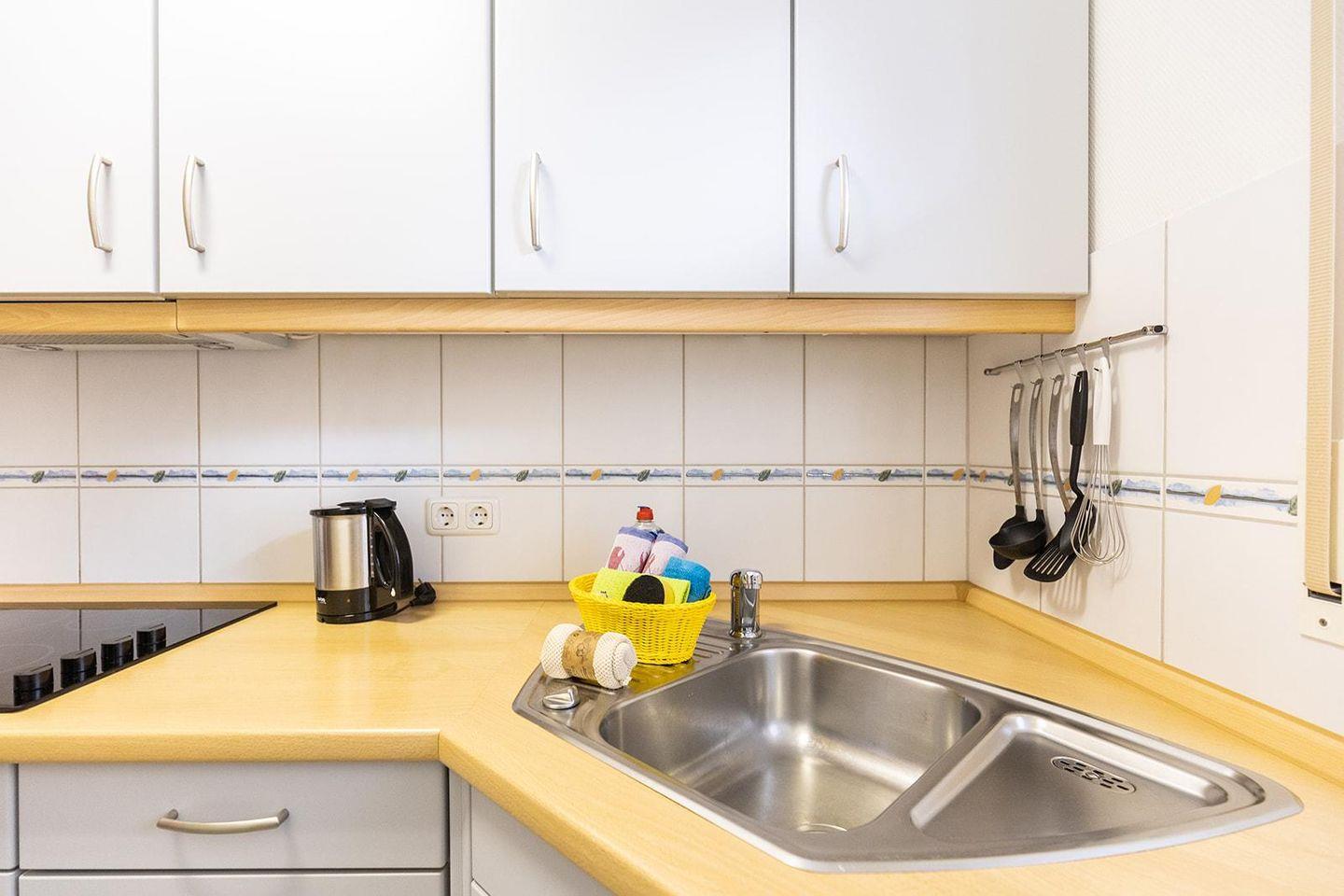 Zusätzliche Annehmlichkeiten wie WLAN, ein Schreibtisch für berufliche Angelegenheiten und eine gemeinschaftliche Waschmaschine mit Trockner sorgen für einen sorgenfreien Aufenthalt. Rauchmelder bieten zusätzliche Sicherheit.
