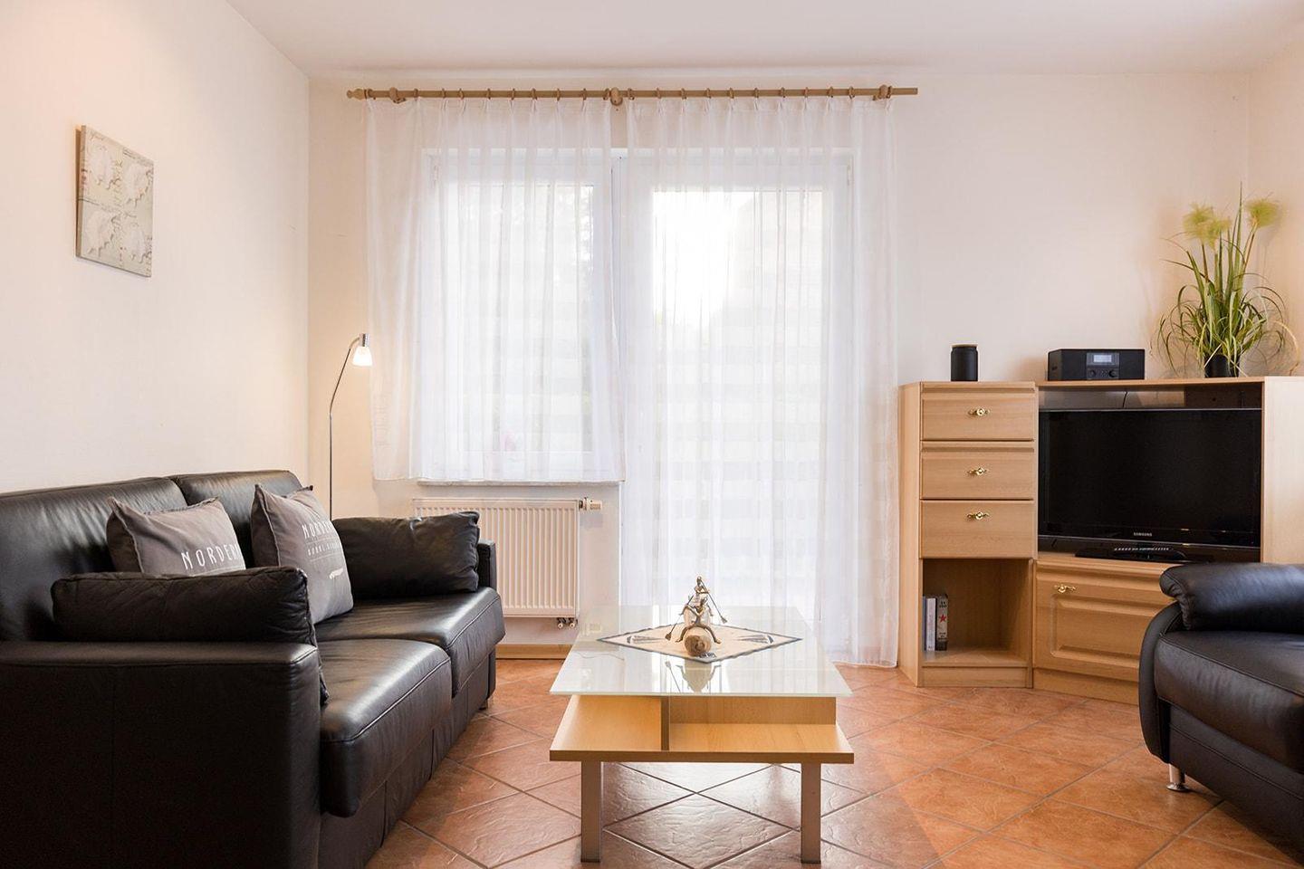Im lichtdurchfluteten Wohnzimmer erwartet dich eine bequeme Sofaecke und ein Essbereich für gesellige Stunden. Die voll ausgestattete, geschlossene Küche verfügt über Herd, Kühlschrank, Geschirrspüler und Kaffeemaschine – perfekt, um frische Zutaten zuzubereiten. Lass den Tag auf der schönen Terrasse ausklingen und genieße die frische Nordseeluft.