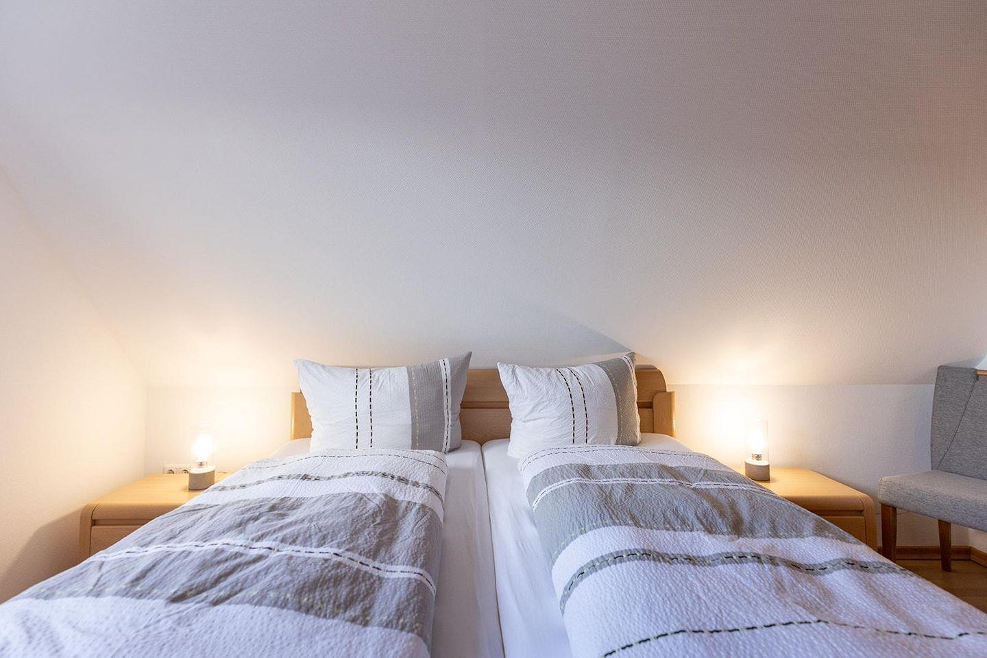 Die Wohnung besticht durch ihre moderne und gemütliche Einrichtung. Zwei komfortable Schlafzimmer sorgen für erholsamen Schlaf – eines mit Doppelbett, das andere mit zusätzlichen Schlafmöglichkeiten. Das helle Badezimmer mit Dusche, Haartrockner und Kosmetikspiegel bietet modernen Komfort.