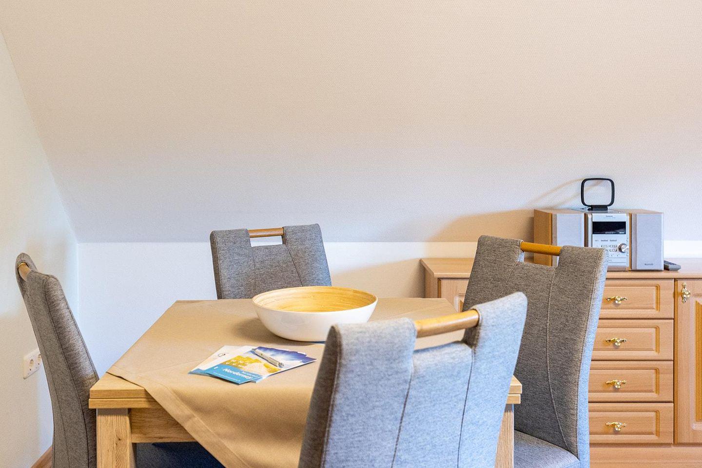 Der großzügige Wohnbereich lädt mit Sofaecke und Esstisch zum Verweilen ein – ideal für gesellige Abende mit Filmen, Spielen oder entspanntem Beisammensein. Dank WLAN und Flachbild-TV bleibst du stets gut unterhalten und informiert.