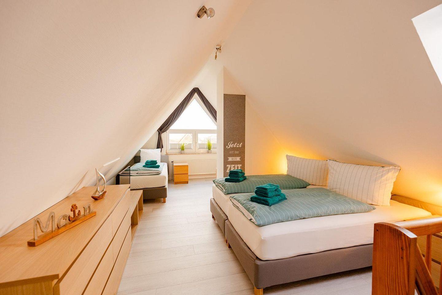 Willkommen im Waldweg App. 4 – deine großzügige Ferienwohnung auf Norderney! Mit 95 m² bietet sie genug Platz für bis zu sechs Personen und ist perfekt für Familien oder Gruppen, die Erholung und Komfort suchen.