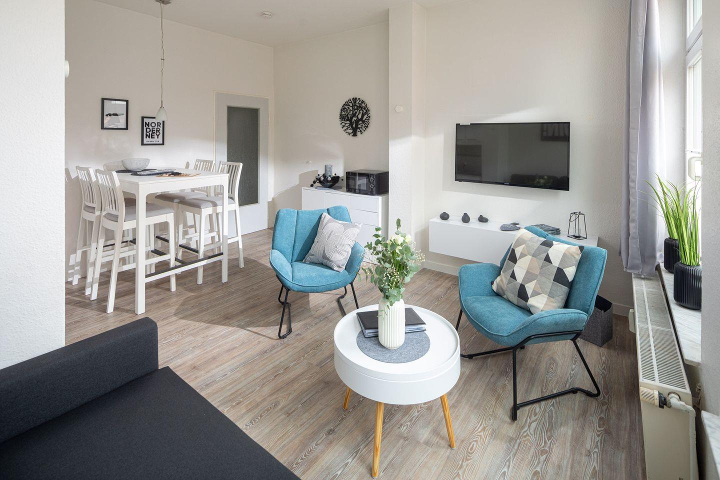 Die Lage der Wohnung ist äußerst zentral: Nur wenige Schritte trennen Sie vom Kurplatz und der Fußgängerzone mit zahlreichen Einkaufsmöglichkeiten und Restaurants. Auch der Weststrand ist in unmittelbarer Nähe.