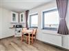 Die offene Küche ist bestens ausgestattet – Herd, Kühlschrank, Mikrowelle und alle wichtigen Utensilien sind da. Genieße deine Mahlzeiten am Esstisch oder entspanne auf dem Sofa mit einem Film auf dem großen TV. WLAN steht dir natürlich auch zur Verfügung.