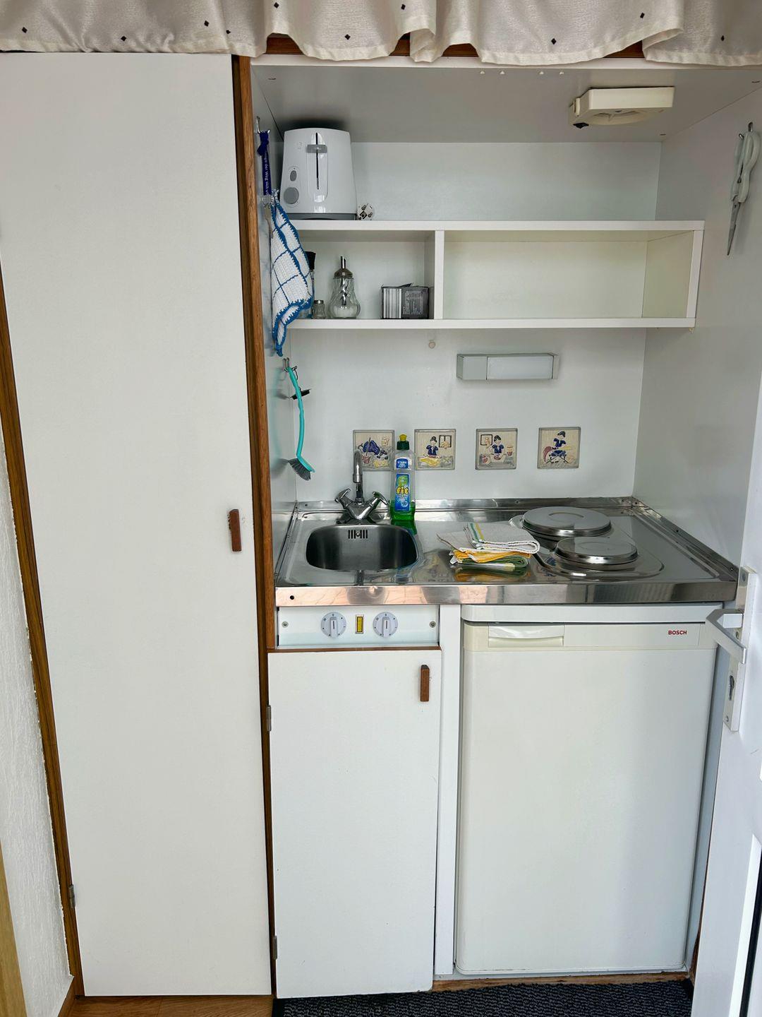 Dieses charmante 1-Zimmer-Apartment bietet einen kombinierten Wohn- und Schlafbereich mit einem 1,40 m breiten Doppelbett, einen Essbereich mit TV sowie eine praktische Kochnische im Eingangsbereich. Das Badezimmer ist mit Dusche und WC ausgestattet.