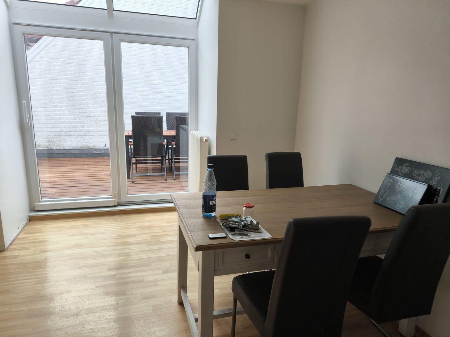 Über die Treppe direkt im Eingangsbereich erreichen Sie den Wohnbereich mit Küche in der 1. Etage. Eine Terrasse geht direkt vom Wohnzimmer ab.