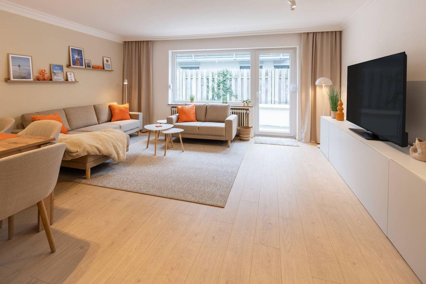 Diese frisch renovierte Ferienwohnung (2025) liegt im Erdgeschoss im Herzen von Norderney und bietet mit rund 77 m² Wohnfläche viel Platz für Paare, Familien, Freunde oder Alleinreisende, die gerne großzügig wohnen.
