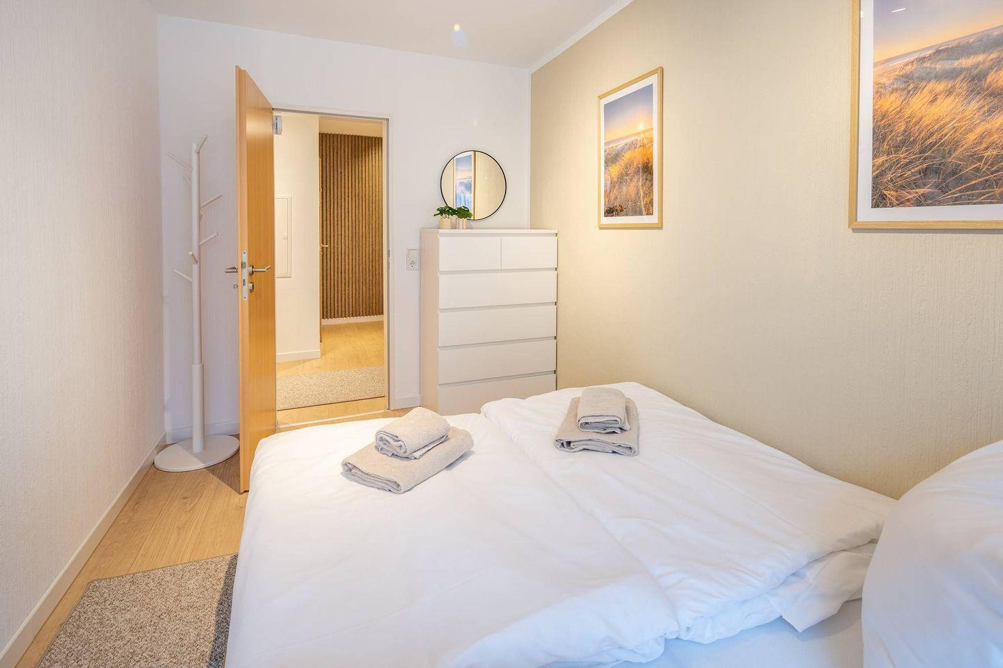 zweites Schlafzimmer mit Doppelbett 160x200 und Kommode