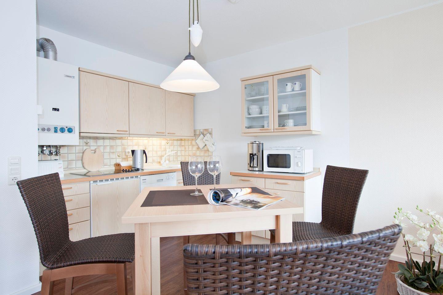 Das helle, großzügige 1-Raum-Apartment im 1. Stock zzgl. Hochparterre verfügt über einen Wohn-/Schlafraum mit gemütlichem Doppelbett, Küchenzeile, Essbereich sowie Badezimmer mit Dusche/ WC. Als Highlight bietet die Wohnung einen schönen Südbalkon, zwei eigene Fahrräder sowie einen PKW-Stellplatz hinter dem Haus. Im Keller stehen Münzwaschmaschine und Trockner zur Mitbenutzung bereit.