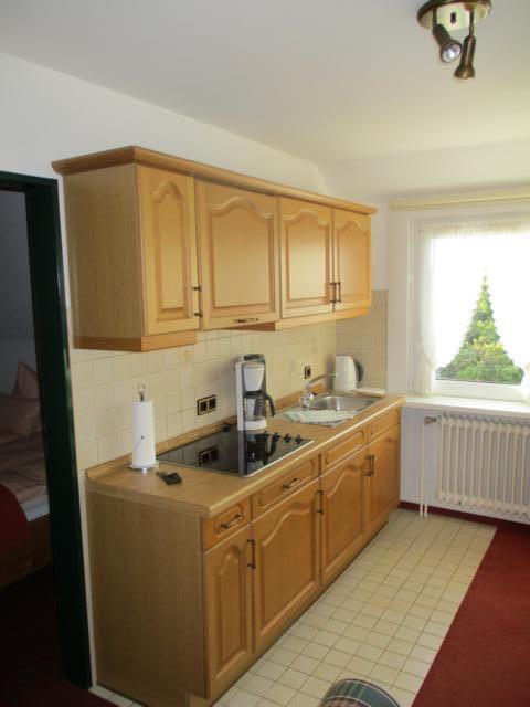 Die offene Küche ist in den Wohnraum integriert und bietet alles, was Sie für die Selbstversorgung benötigen: Ceranherd, Kühlschrank, Kaffeemaschine, Toaster, Wasserkocher sowie sämtliche Küchenutensilien, Geschirr und Besteck. Geschirrhandtücher sind vorhanden, sodass Sie sich auch in puncto Hauswirtschaft bestens versorgt wissen können.