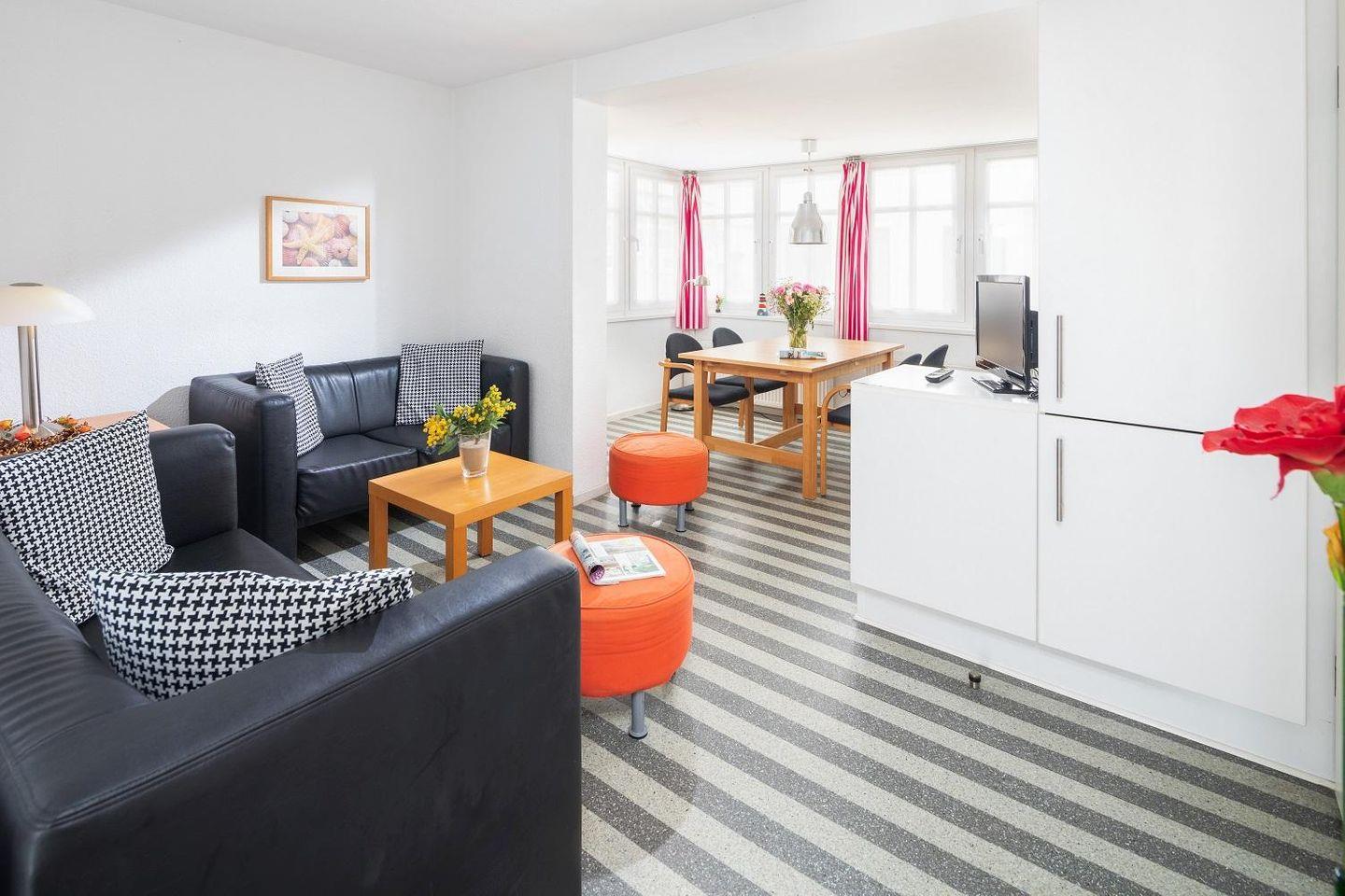 Die Wohnung Lounge ist eine von drei Ferienwohnungen im Haus. Die Milchbar und Café Marienhöhe sind so wie auch Geschäfte des täglichen Bedarfs schnell fußläufig zu erreichen.