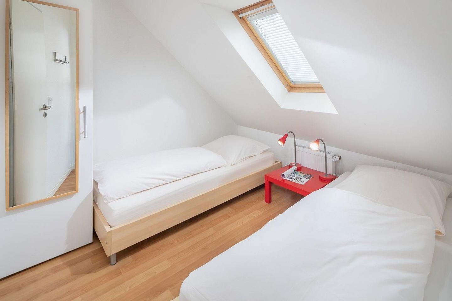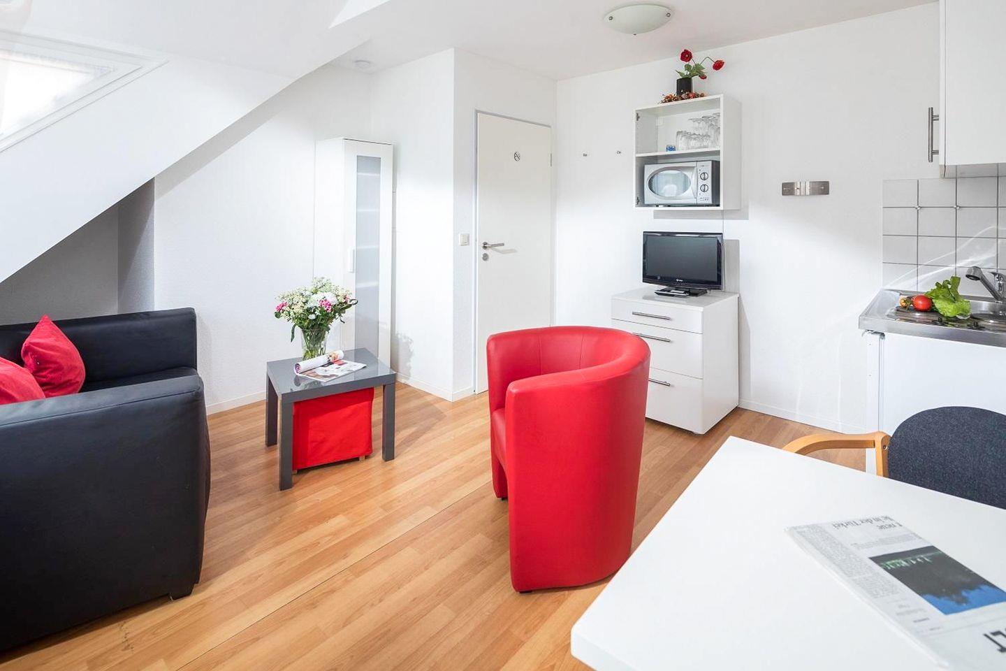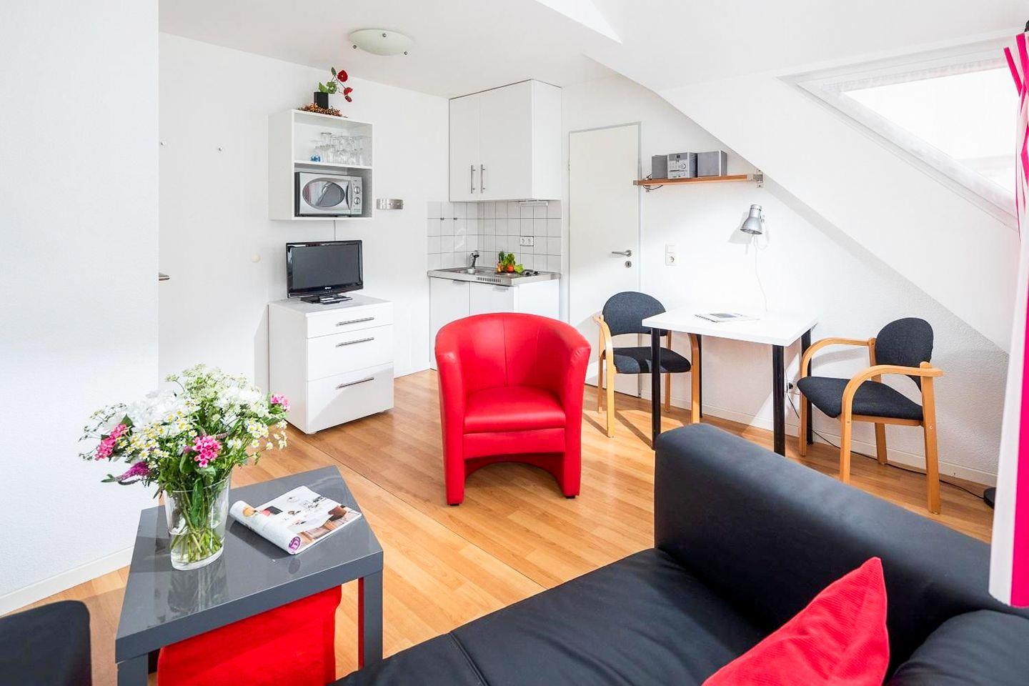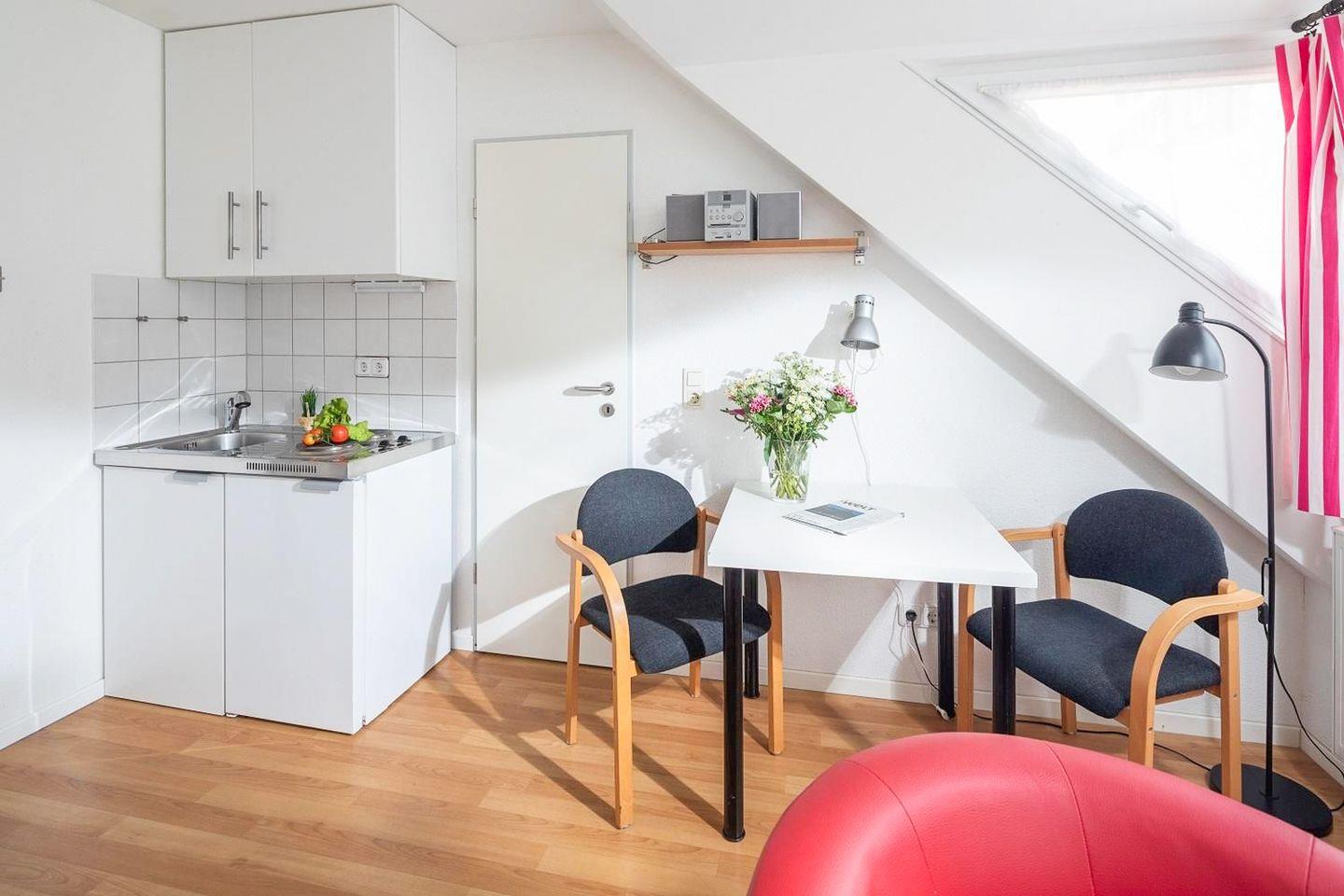 Die Wohnung Steuerbord ist eine von drei Ferienwohnungen im Haus. Die Milchbar und Café Marienhöhe sind so wie auch Geschäfte des täglichen Bedarfs schnell fußläufig zu erreichen.