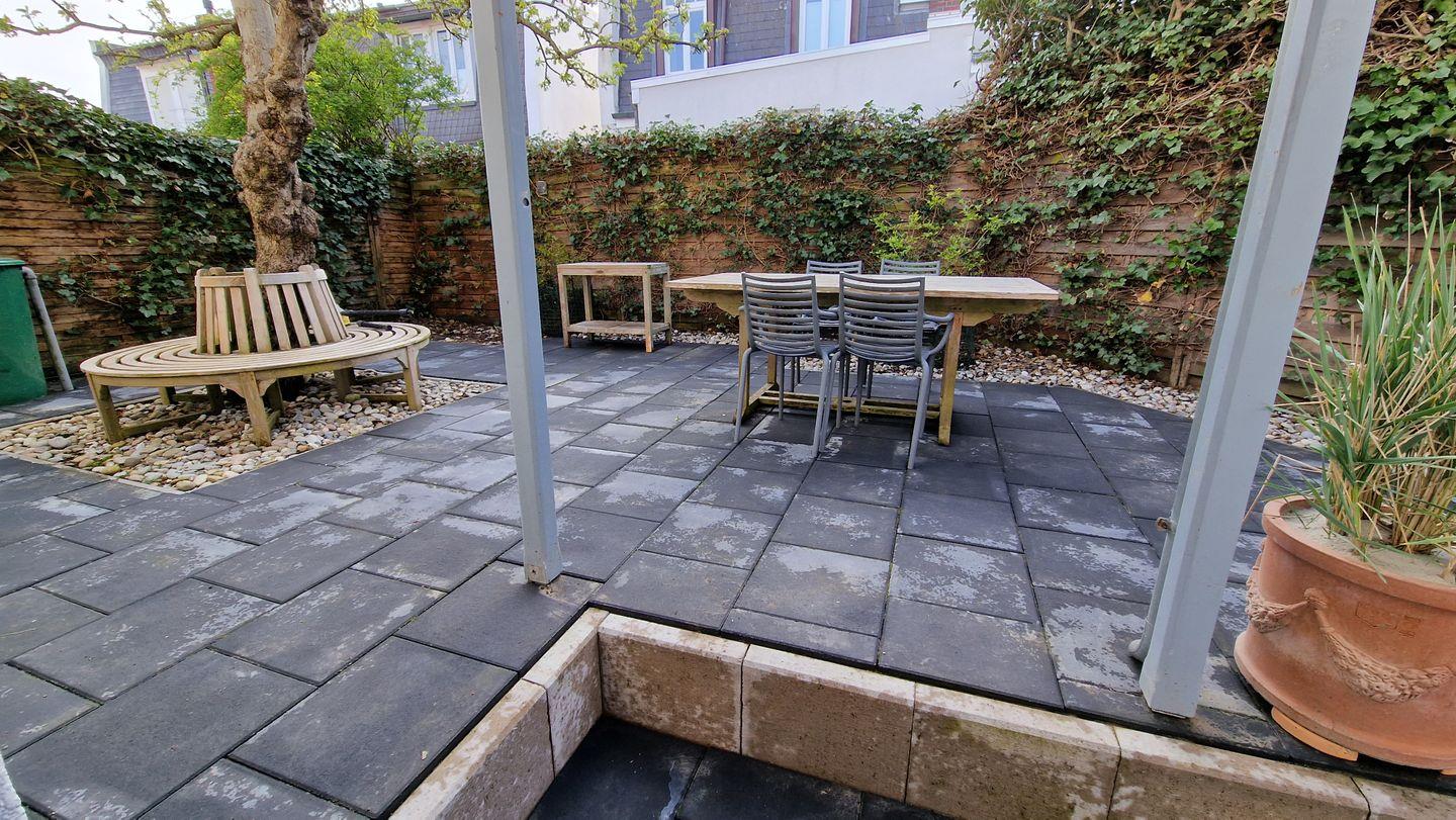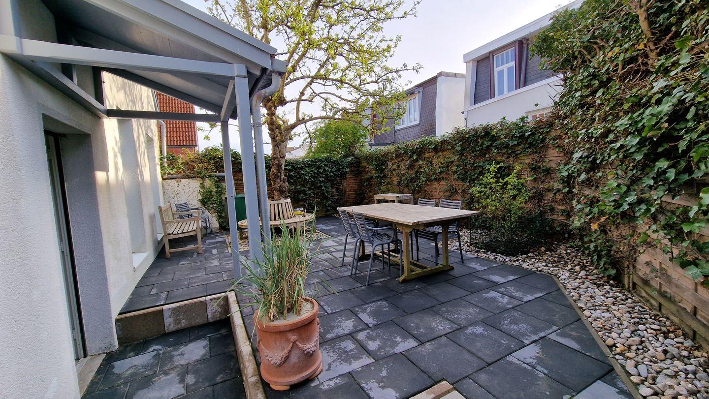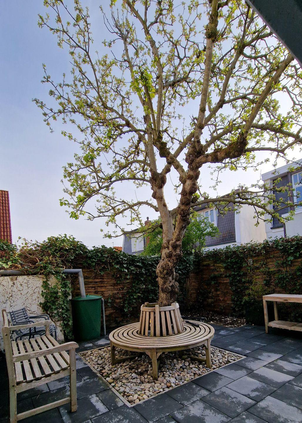 Das Groot Huus verfügt über eine Terrasse vor und eine hinter dem Haus. Im Erdgeschoss liegt die separate Küche mit zwei Sitzgelegenheiten und einer Durchreiche zum Esszimmer, an dessen Tisch neun Personen vor dem Terrassenfenster bequem Platz nehmen können. Ein separates Schlafzimmer mit zwei Etagenbetten und das Fernsehzimmer liegen nach hinten raus zur Terrasse mit Apfelbaum. Das geräumige Tageslichtbad hat eine Wanne, eine Dusche und Doppelwaschbecken. Waschmaschine und Trockner zur kostenfreien Nutzung finden dort ebenso ihren Platz.