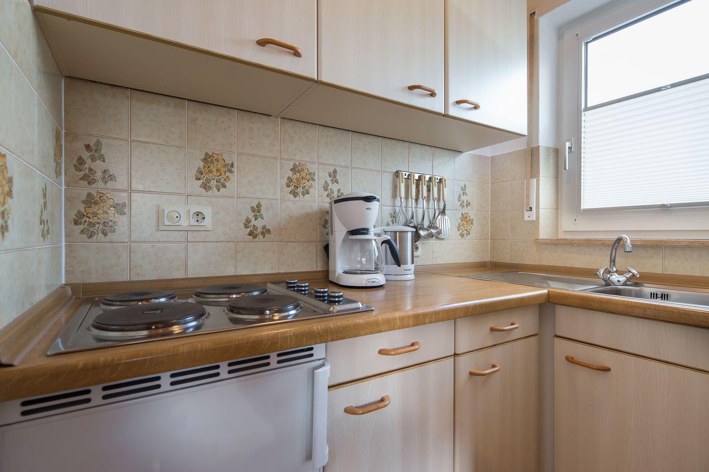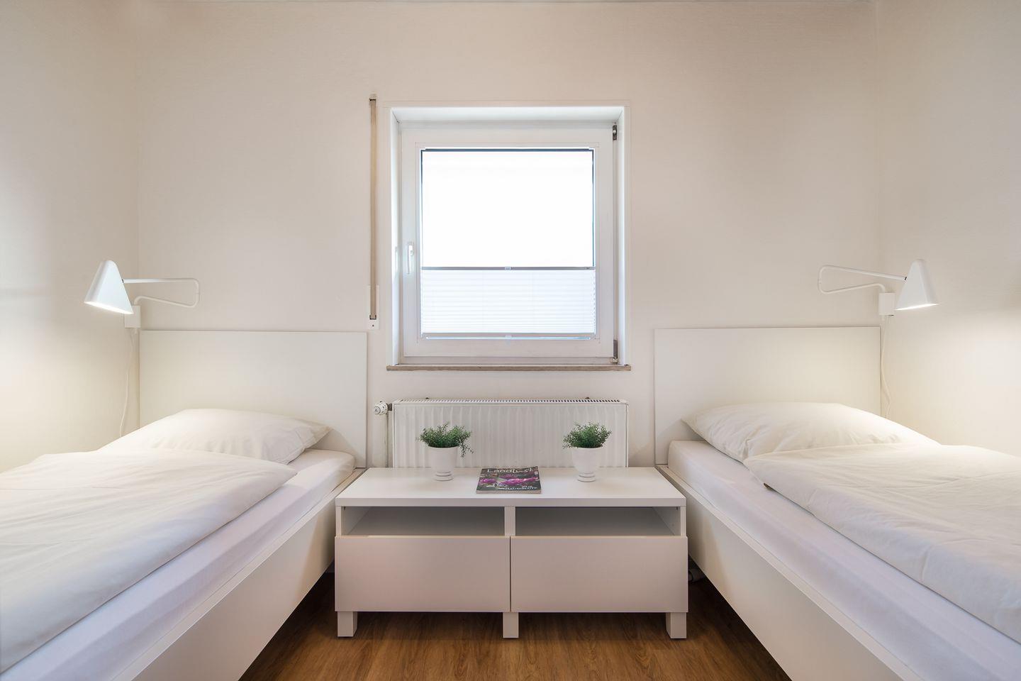 das Appartement im 1. OG verfügt über ein separates Schlafzimmer mit 2 Einzelbetten. Im Wohn-Schlafraum mit Essecke ist eine weitere Schlafmöglichkeit auf dem Schlafsofa. Dahinter liegt die Küchenzeile in einem separaten Raum. Badezimmer mit Dusche/WC. Im Haus Ahorn befinden sich fünf weitere Ferienwohnungen. Bäcker, Lebensmittelgeschäft und Fahrradverleih sind die Nordhelmstraße runter fußläufig schnell zu erreichen.