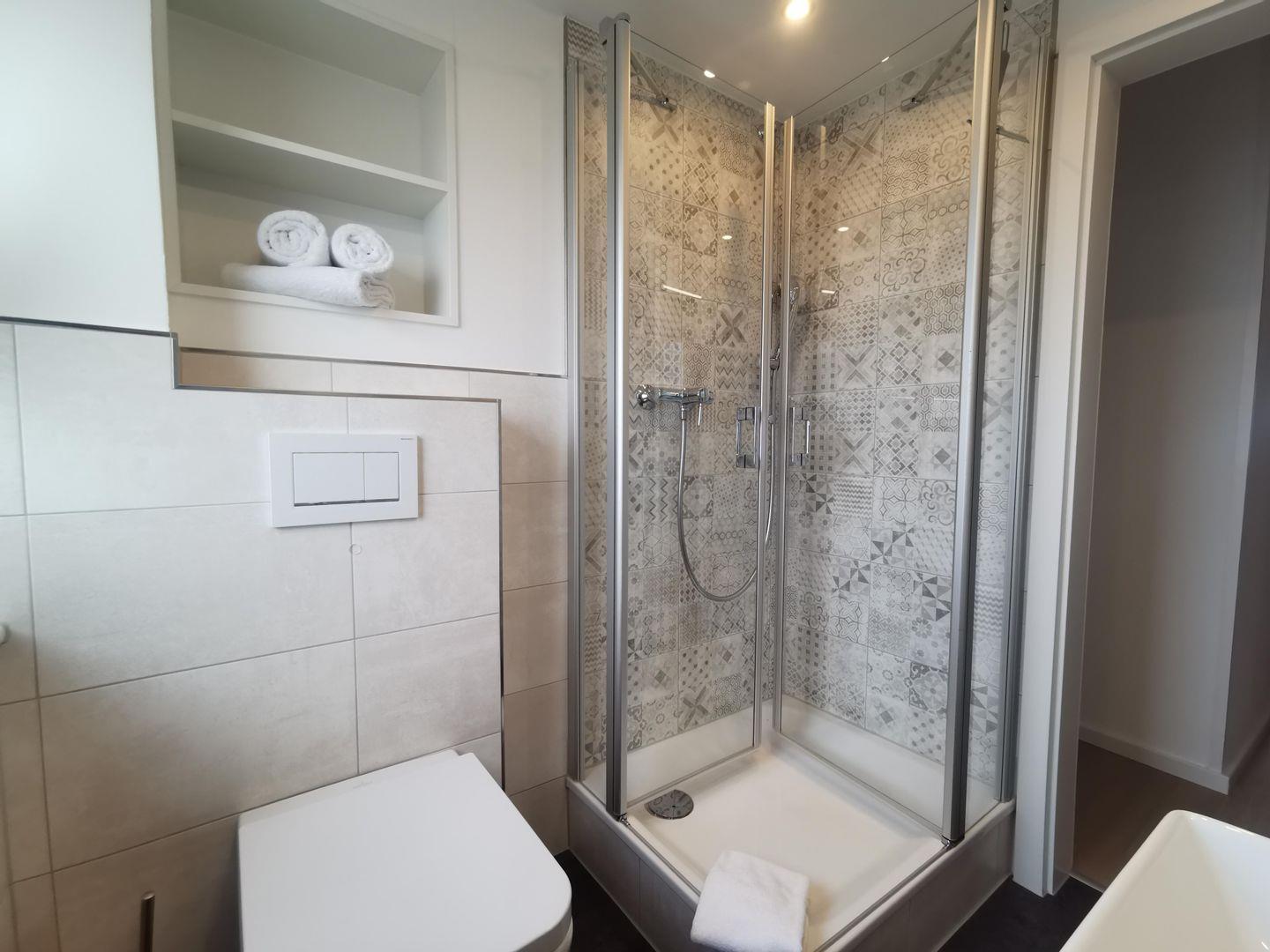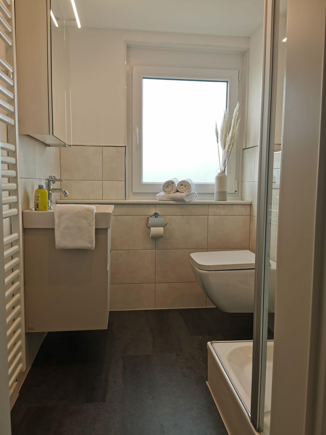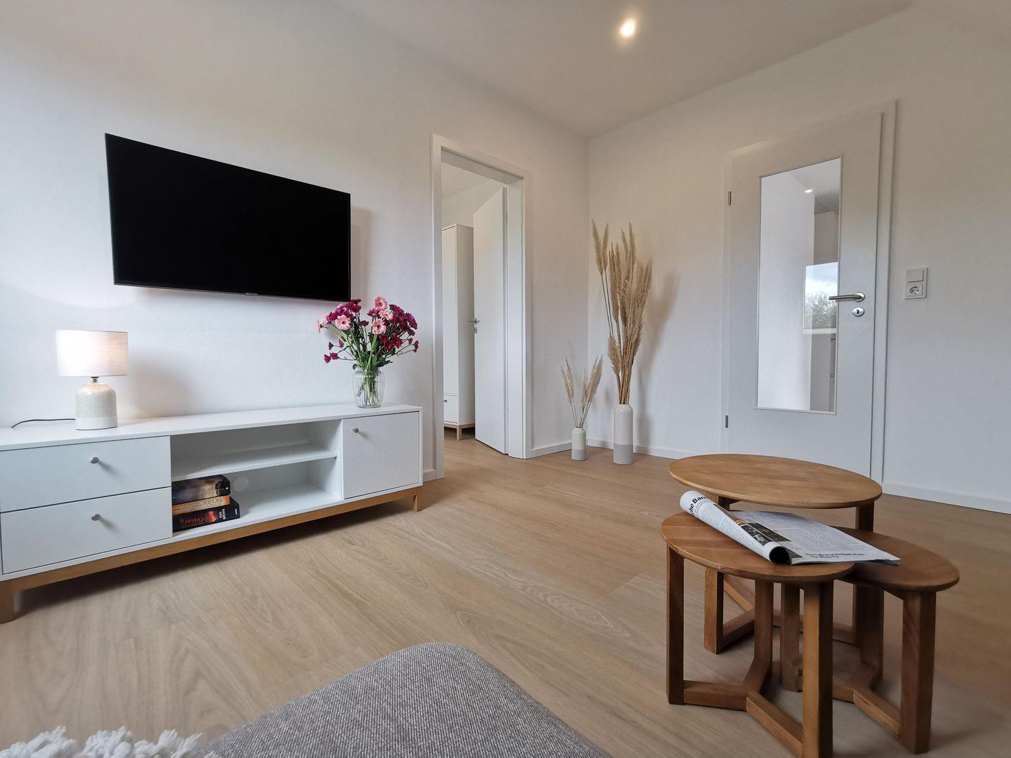das helle und luftige Appartement im 2. OG verfügt über eine komplett ausgestattete Küche mit rundem Esstisch. Hinter dem Wohnzimmer befindet sich das separate Schlafzimmer mit Doppelbett und extra TV. Tageslichtbad mit Dusche/WC.