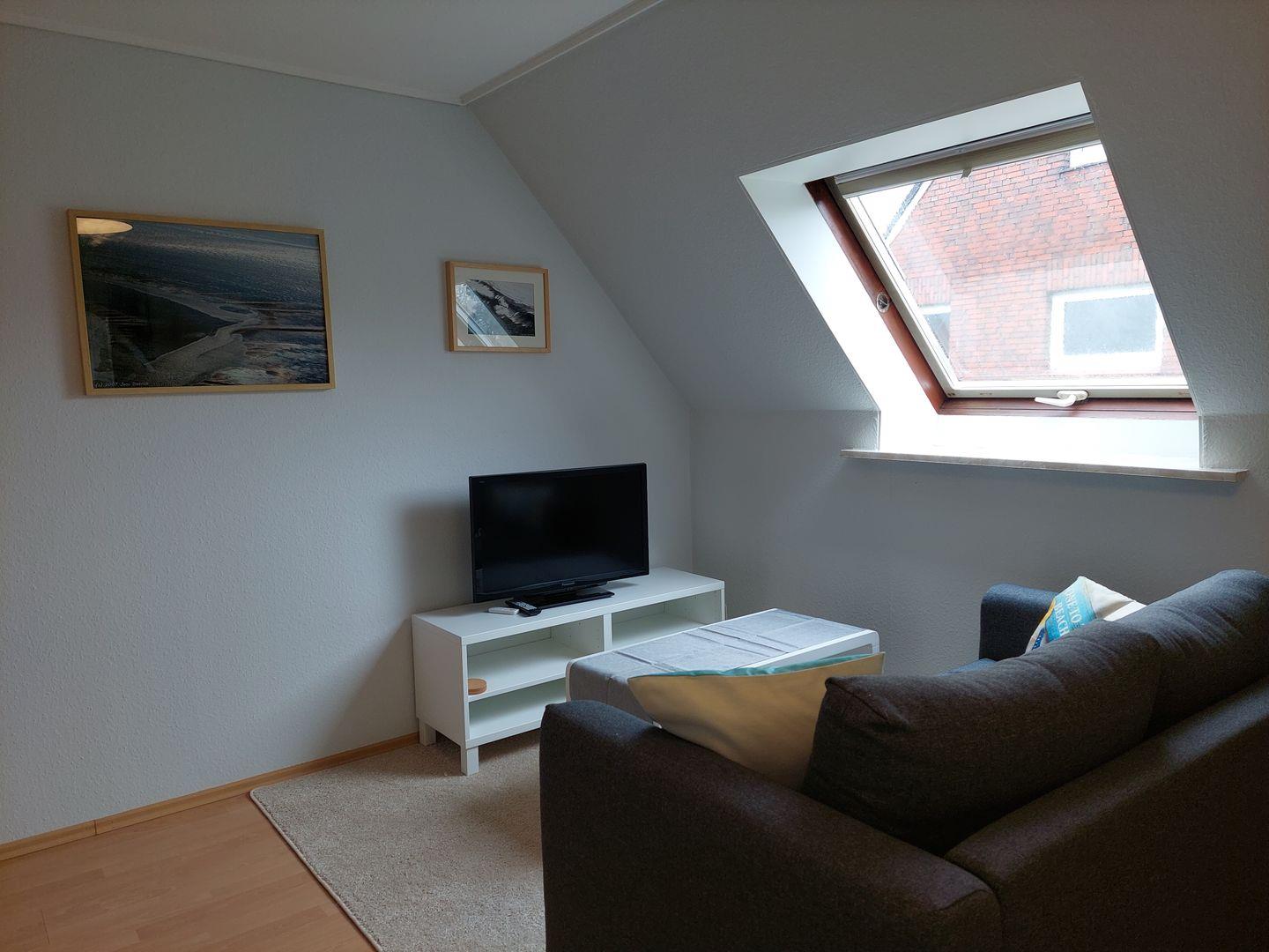 der geräumige Wohn-Schlafraum bietet Platz für ein feststehendes Doppelbett (1,80 x 2,00m) und eine kleine Sofaecke. Eine Essecke befindet sich in der separaten Küche. Das Tageslichtbad hat Dusche/WC. Im Haus befinden sich 2 weitere Ferienwohnungen. Lebensmittelgeschäft und Bäcker sind um zwei Ecken schnell fußläufig zu erreichen.