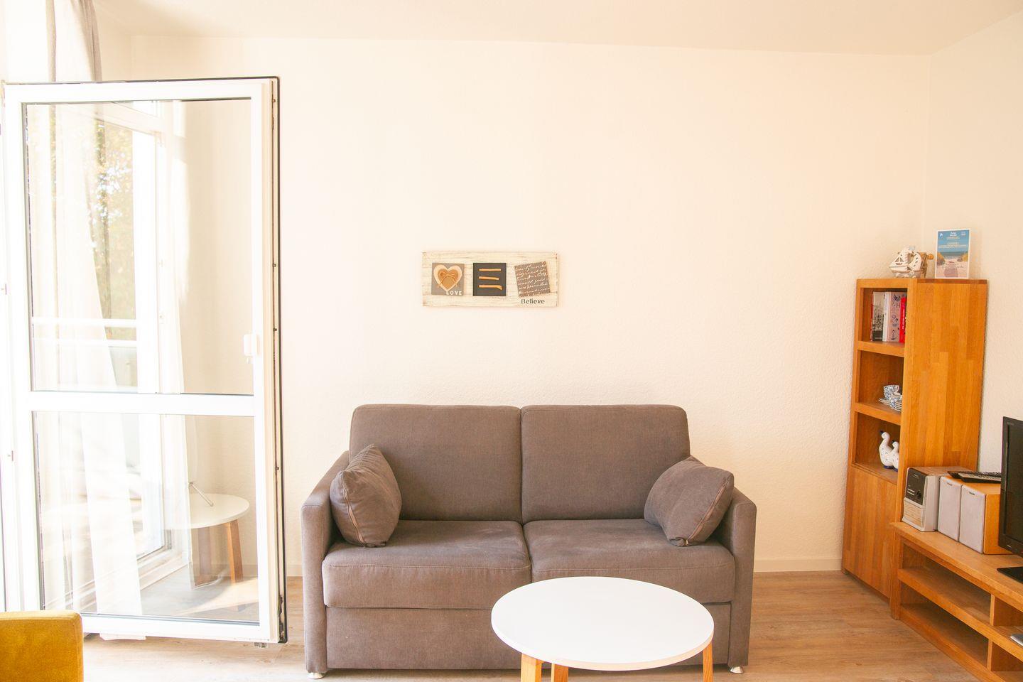 das Appartement im 1. OG verfügt über ein separates Schlafzimmer mit Doppelbett, Wohn-Schlafraum (Schlafsofa 1,40m) mit Küchenzeile, Essecke, Diele und Tageslichtbad mit Dusche/WC. Der geräumige Balkon bietet Platz für Tisch und Stühle und ist sowohl vom Wohn-als auch vom Schlafzimmer aus zugänglich. Ein eigener Parkplatz steht Ihnen auf dem Grundstück zur Verfügung. Der Sonnenhof befindet sich in der Nordhelmsiedlung Norderneys. Im Haus befinden sich 4 weitere Ferienwohnungen.
