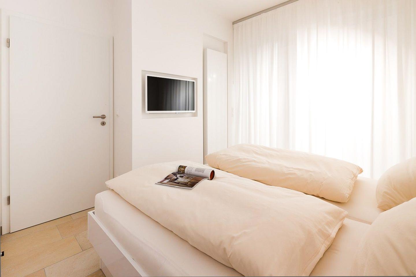 großzügiger Wohnraum mit voll ausgestatteter Küchenzeile, Sofaecke und Essplatz direkt an den Terrassenfenstern zum Balkon. Vom separaten Schlafzimmer aus (Doppelbett) haben Sie einen weiteren TV und einen kleinen Südbalkon (ca. 5qm). Das Badezimmer mit Dusche und WC hat ein kleines Fenster. Fahrstuhl vorhanden.
