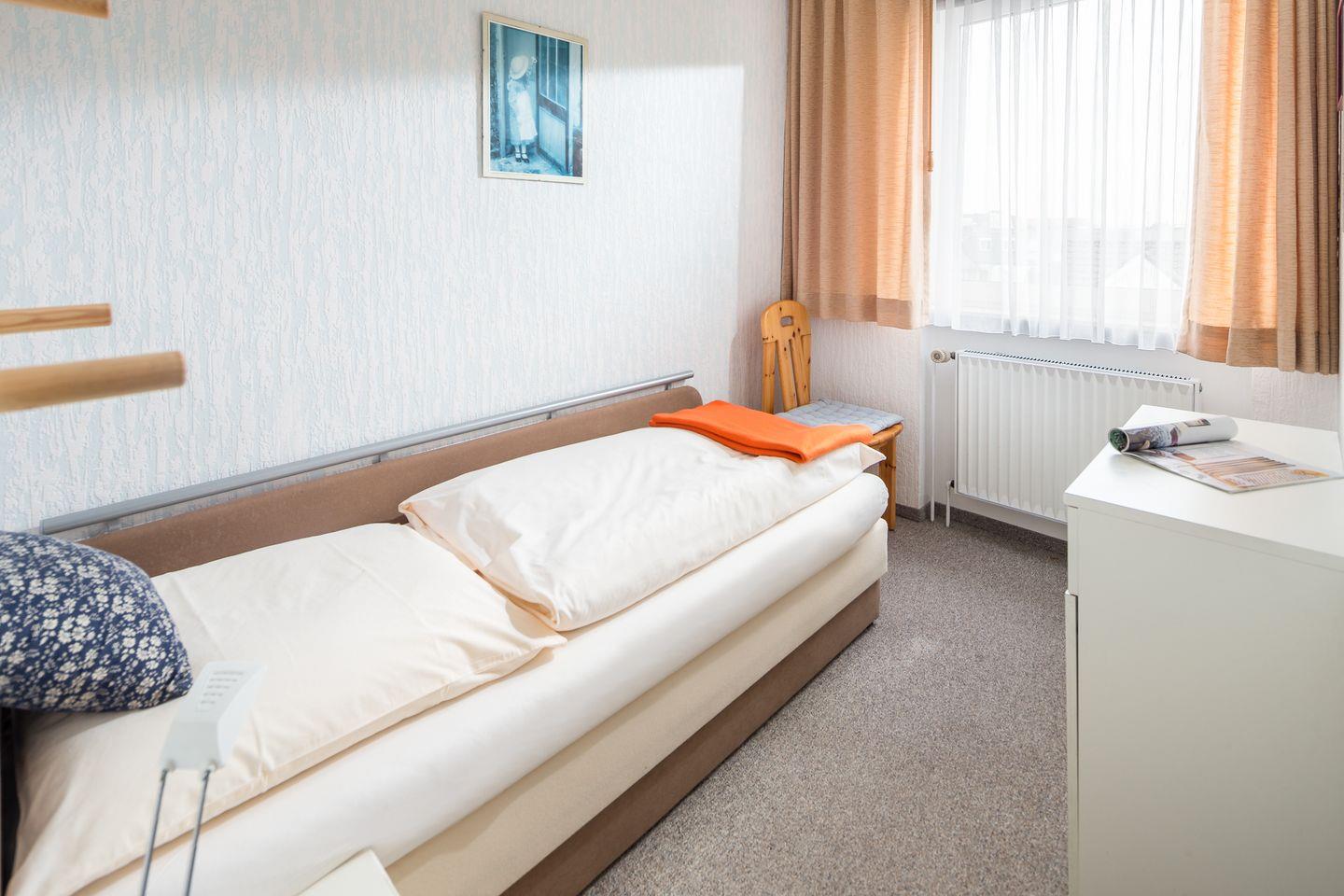 hinter dem separaten Schlafzimmer mit Doppelbett liegt das kleine Schlafzimmer mit Einzelbett. Vom hellen Wohnraum mit Sitz-und kleiner Essecke haben Sie einen weiten Blick über die Dächer der Insel. Die Küchenzeile ist mit einem Vorhang vom Wohnraum abgetrennt. Badezimmer mit Dusche und WC. Im Haus Westwind/Hallwegh befinden sich 5 Ferienwohnungen. Es liegt im Westen Norderneys, am Beginn der Jann-Berghaus-Straße. Milchbar und Marienhöhe sind nur einen Katzensprung entfernt.