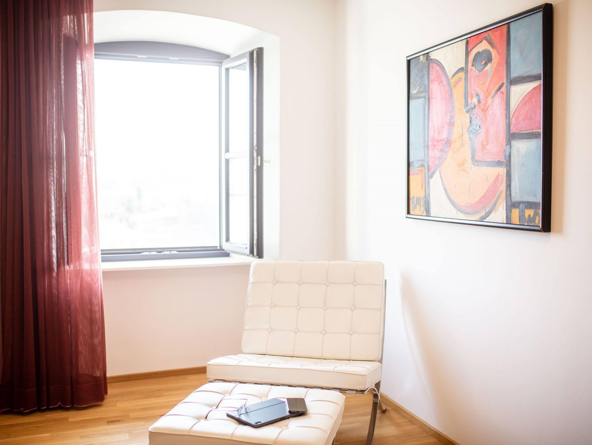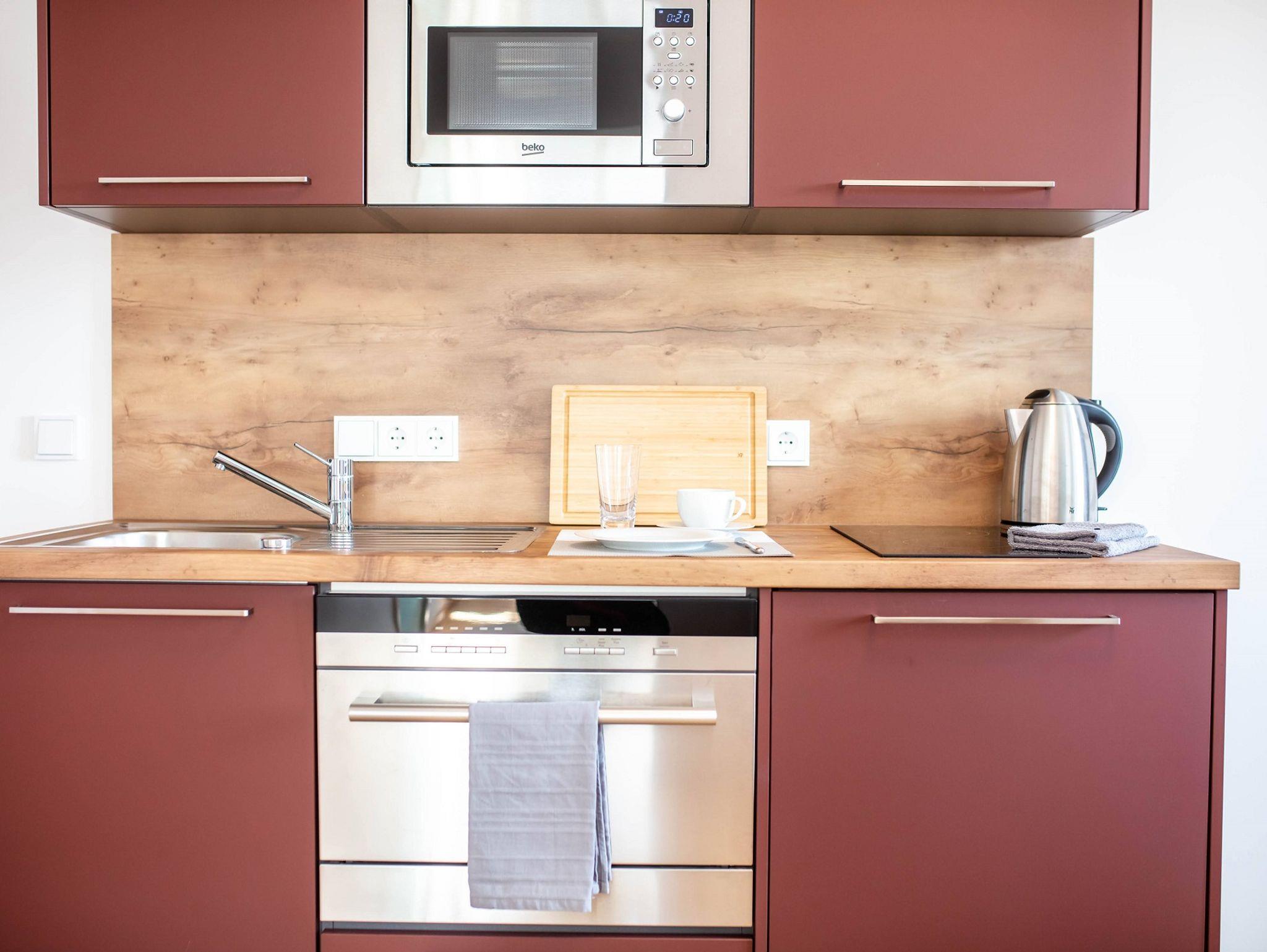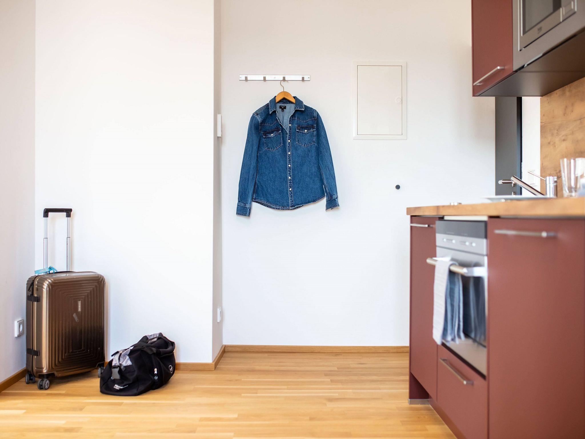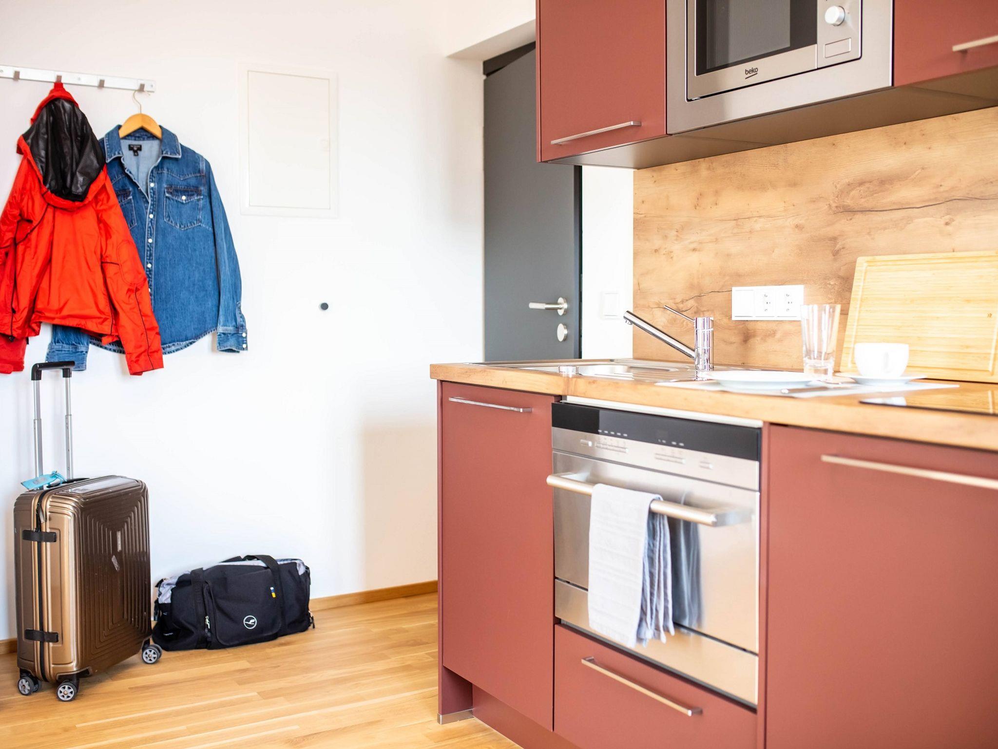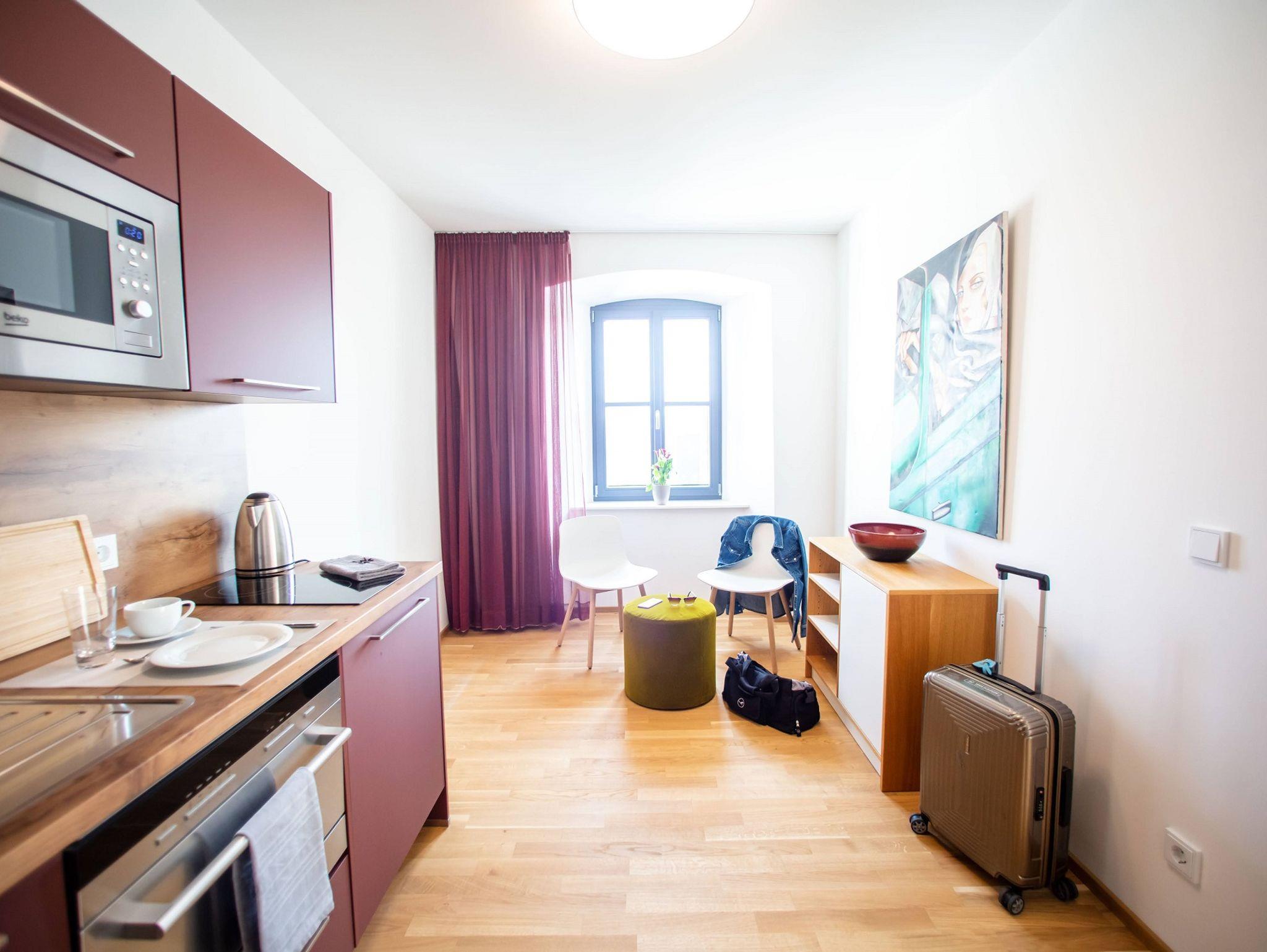 Im Grundpreis enthalten sind die Nutzung von: Handtücher, Bettwäsche, WLAN, Parkplatz, Waschmaschine, Trockner, Terasse, Lounge, Co-Working Räume.