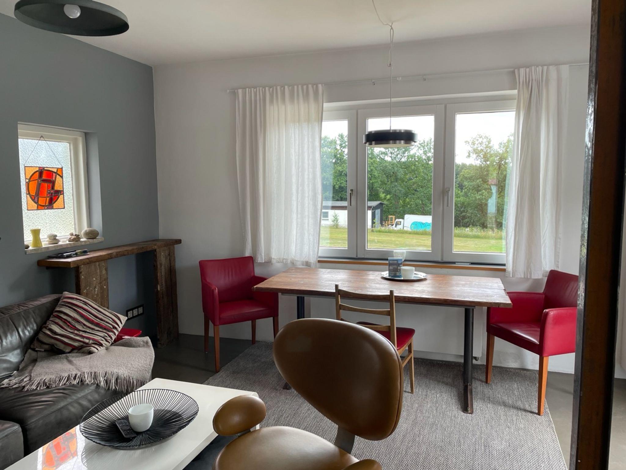 Dieses barrierefreie Apartment bietet auf 63qm großzügigen Komfort für einen entspannten Aufenthalt. Es verfügt über ein separates Schlafzimmer mit zwei Betten sowie eine zusätzliche Schlafcouch, ideal für Paare oder kleine Familien. Bettwäsche und Handtücher sind inklusive. Die moderne Küche ist mit Geschirrspülmaschine, Backofen und Herd ausgestattet und lädt zum gemeinsamen Kochen ein. Das Duschbad verfügt über eine ebenerdige Dusche für besonderen Komfort. Zentralheizung und ein Kaminofen sorgen für wohlige Wärme zu jeder Jahreszeit. Die eigene Südterrasse mit Blick auf die Wiese und gemütlichen Gartenmöbeln bietet den perfekten Ort zum Entspannen im Grünen.