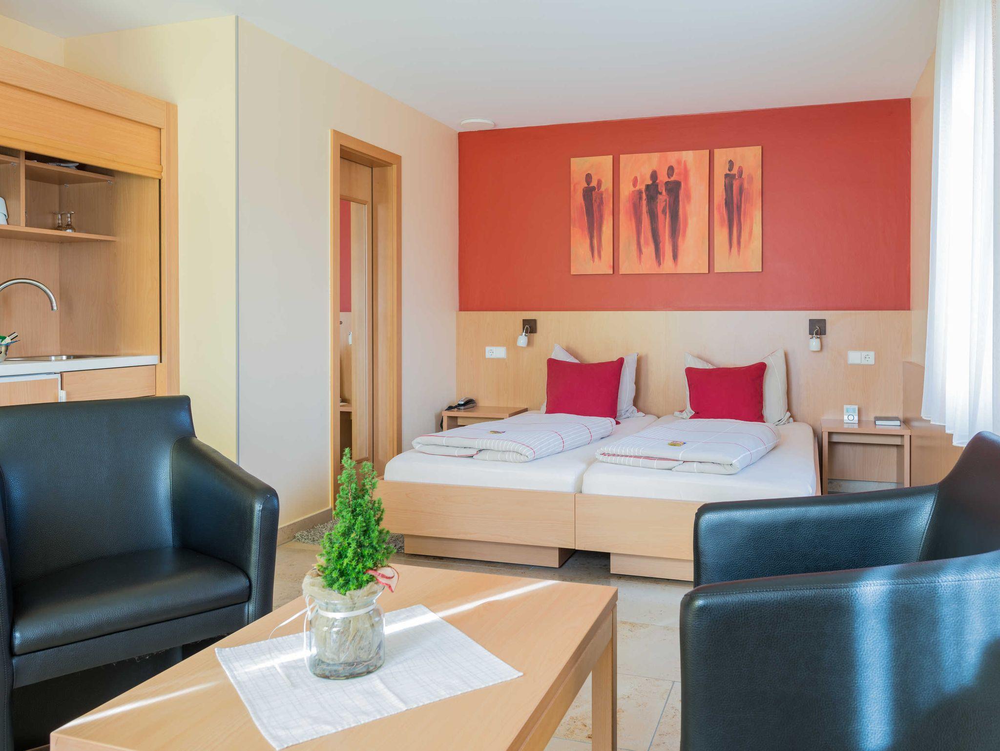 Alle Zimmer sind mit SAT-TV, Telefon, Internet-Anschluss, Kühlschrank und Kaffeemaschine ausgestattet.