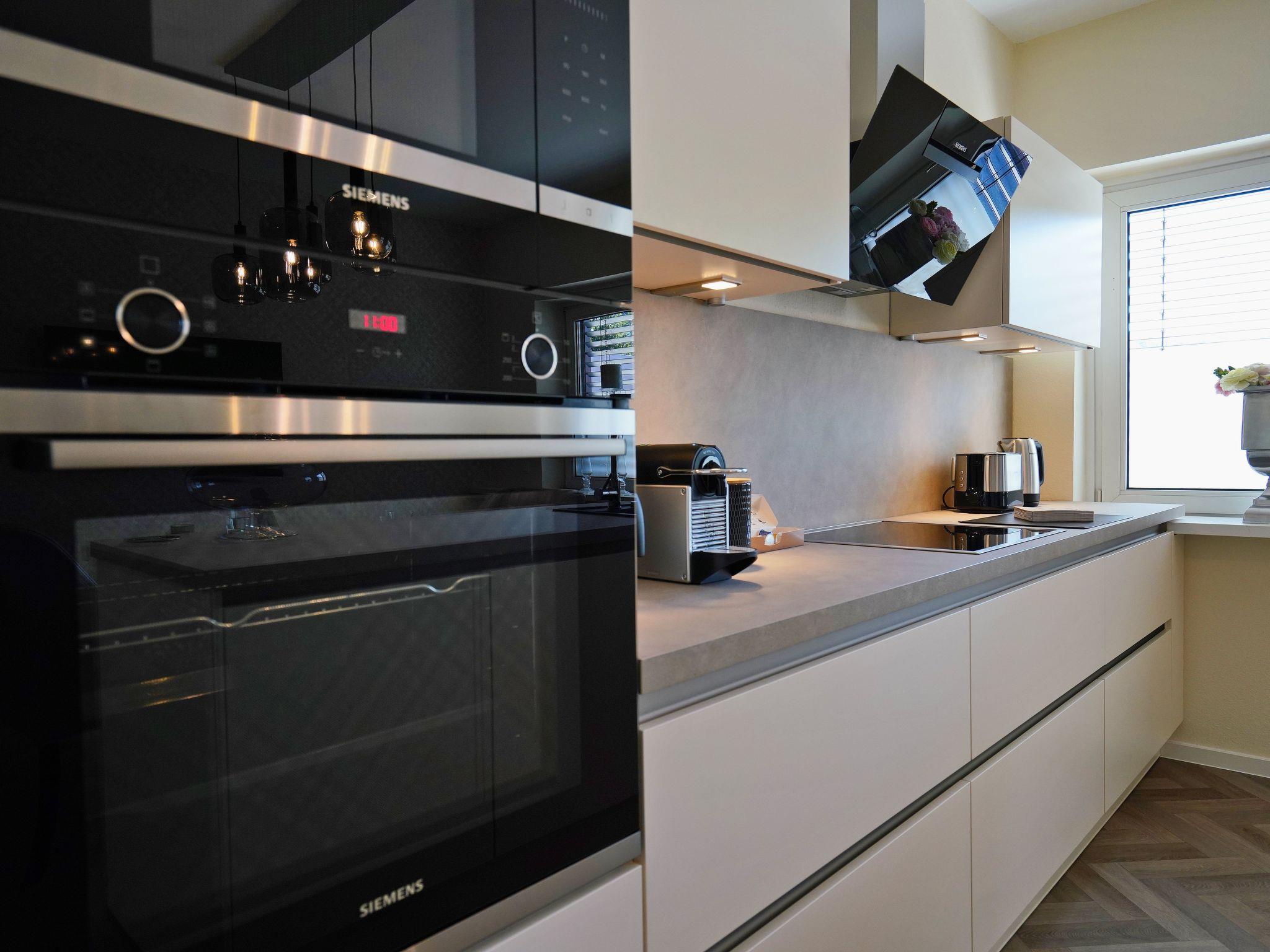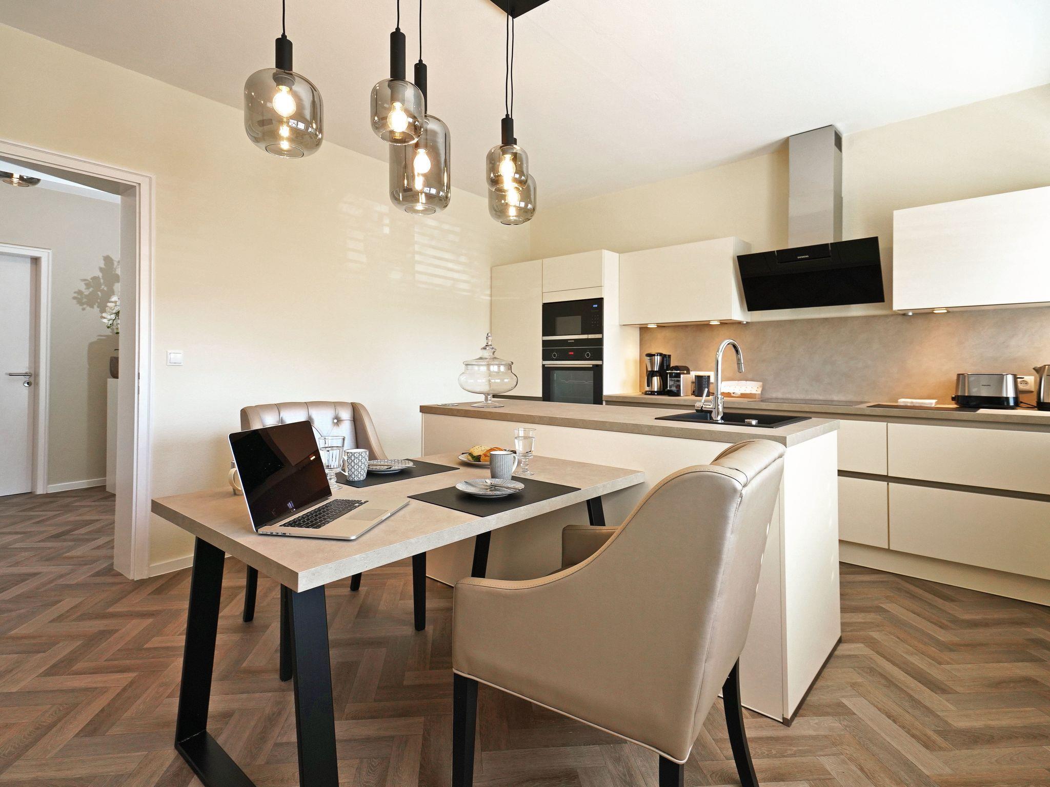 The cosy living/dining room is furnished to a high standard and offers every comfort. All rooms can be darkened, in the bedroom with external blinds and at the front with a modern external venetian blind system (electric).