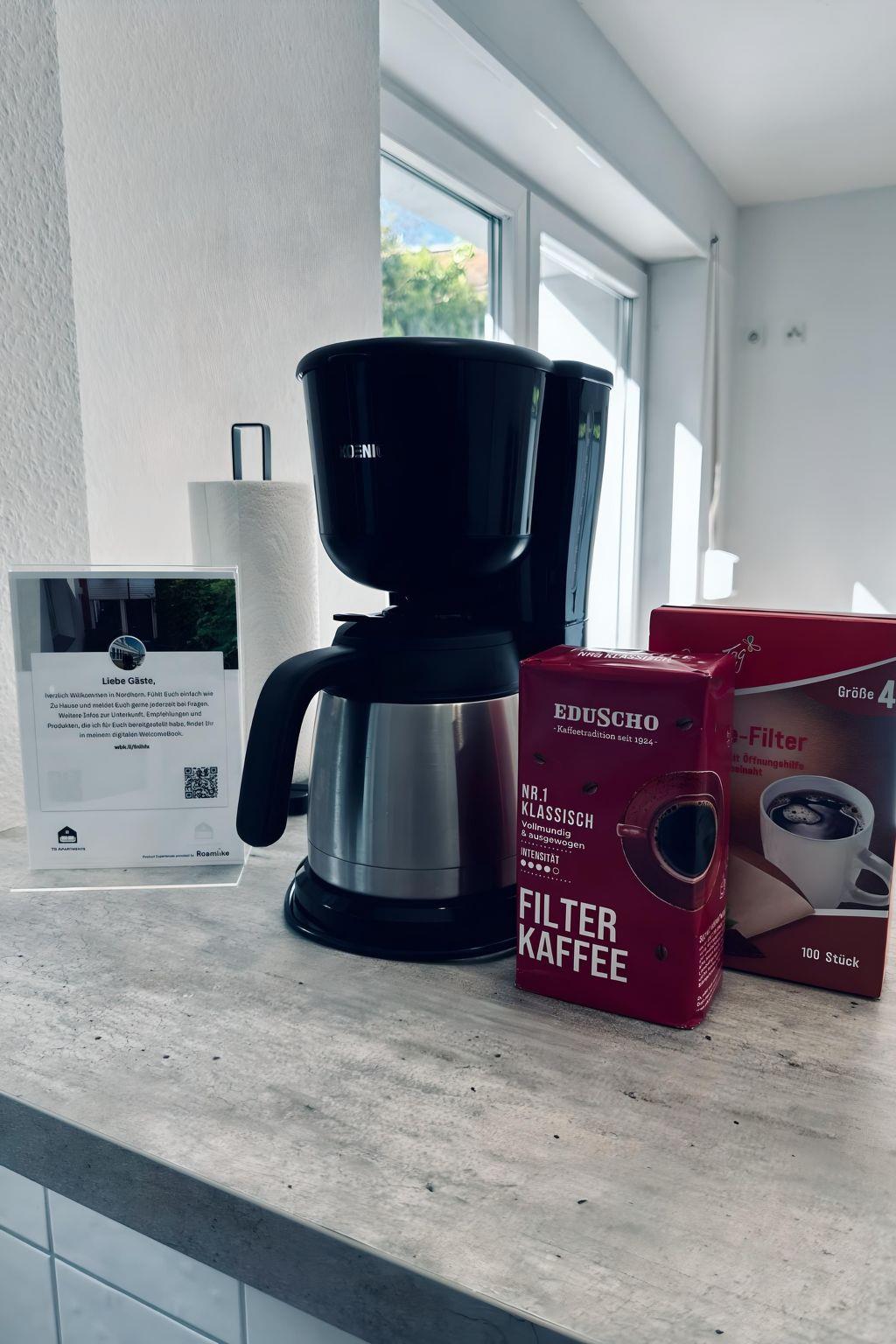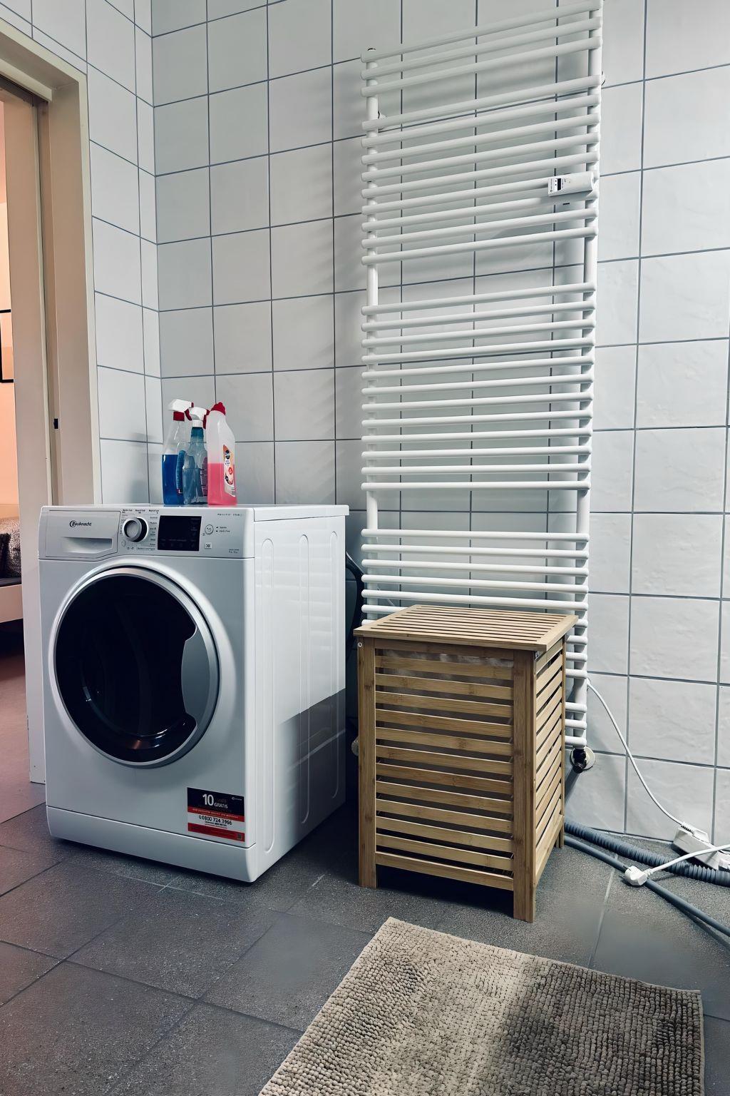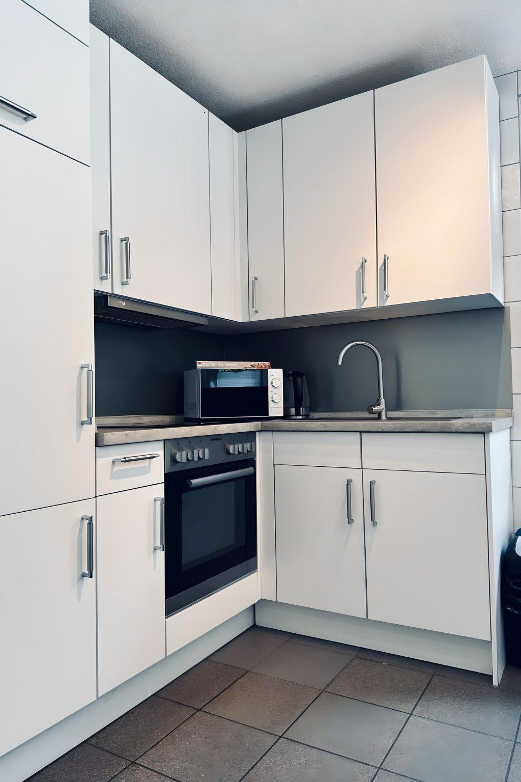 Inside the flat you will find practical amenities to make your stay comfortable. In addition to a cosy sleeping area, there is a washing machine for your sole use, which is particularly useful for longer stays. The thoughtful selection of household appliances, including a ceramic hob and kettle, will help you to cook for yourself and maintain your independence during your holiday.
