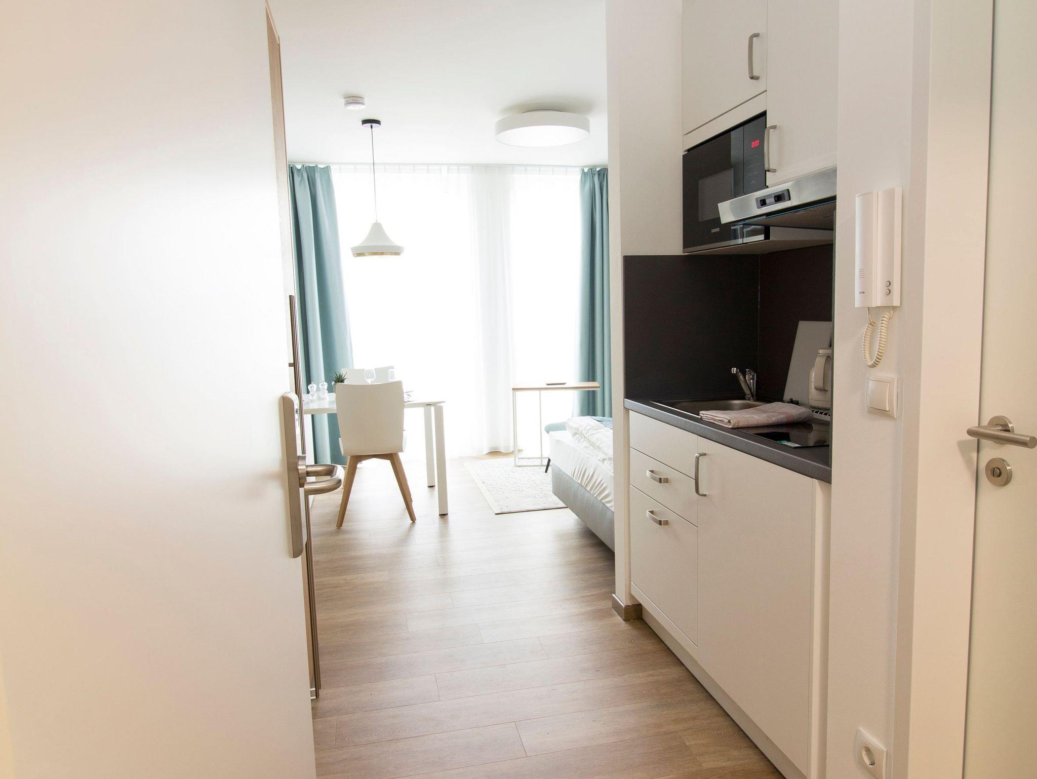 Das Boardinghouse - Konzept, gleichzeitig Wohnung und Hotel zu sein, wird durch die elegante, urbane und funktionelle Einrichtung unterstrichen. Es bietet eine interessante Alternative, ohne auf den Service eines Hotels wie Handtücher, Bettwäsche etc. verzichten zu müssen.