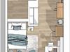 27qm: Wohn- & Schlafzimmer mit Boxspringbett, Bad mit bodengleicher Dusche