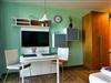 Der Tisch im Essbereich mit 2 Stühlen ist multifunktional und kann durch seine technische Ausstattung auch als Schreibtisch genutzt werden. Ganz selbstverständlich verfügt das Apartment über einen kostenfreien Internetanschluss, einen internetfähigen Smart-TV und ein Bluetooth-Radio.
