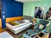 Das 1,40 m breite Boxspringbett im Schlafbereich bietet allerhöchsten Schlafkomfort.