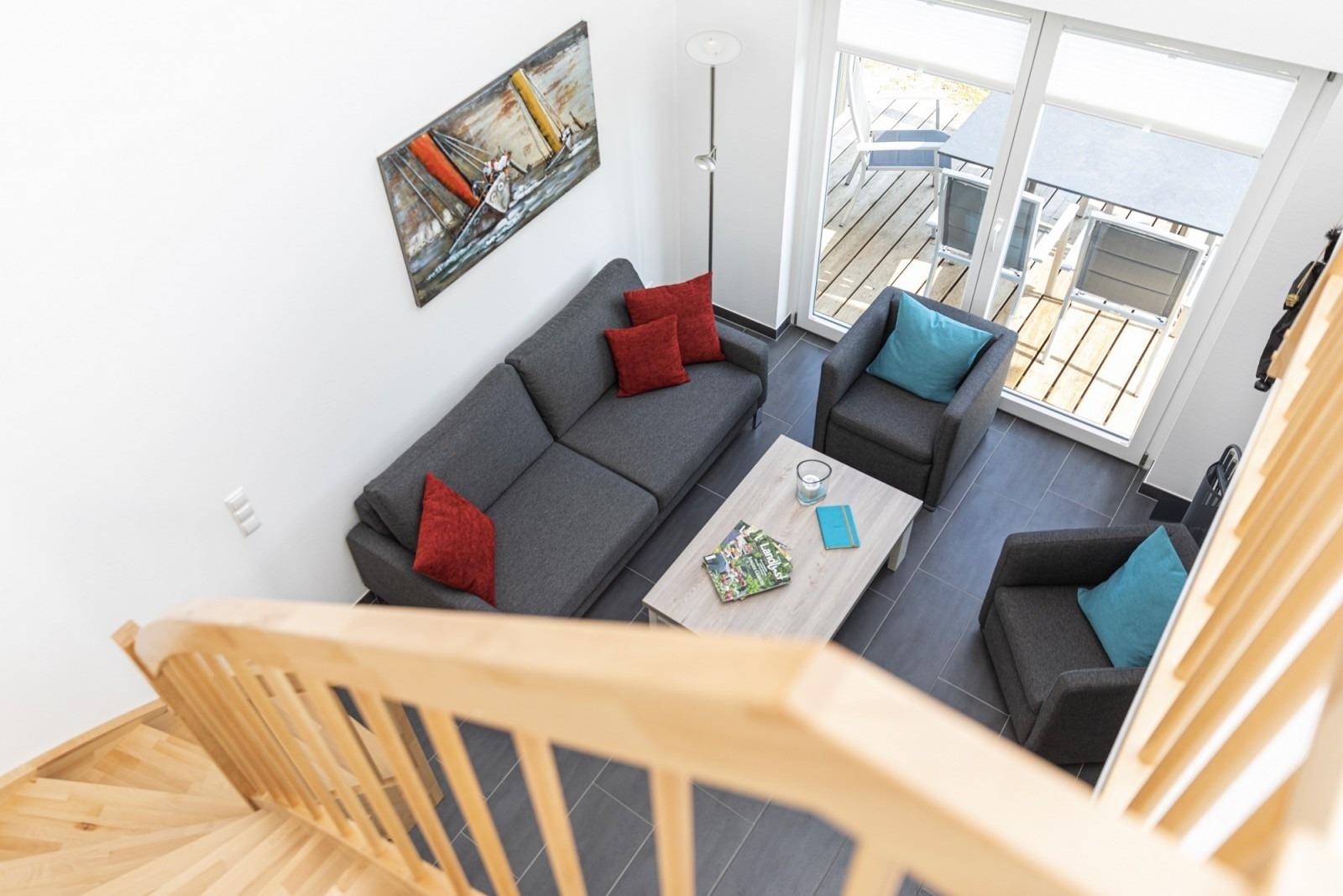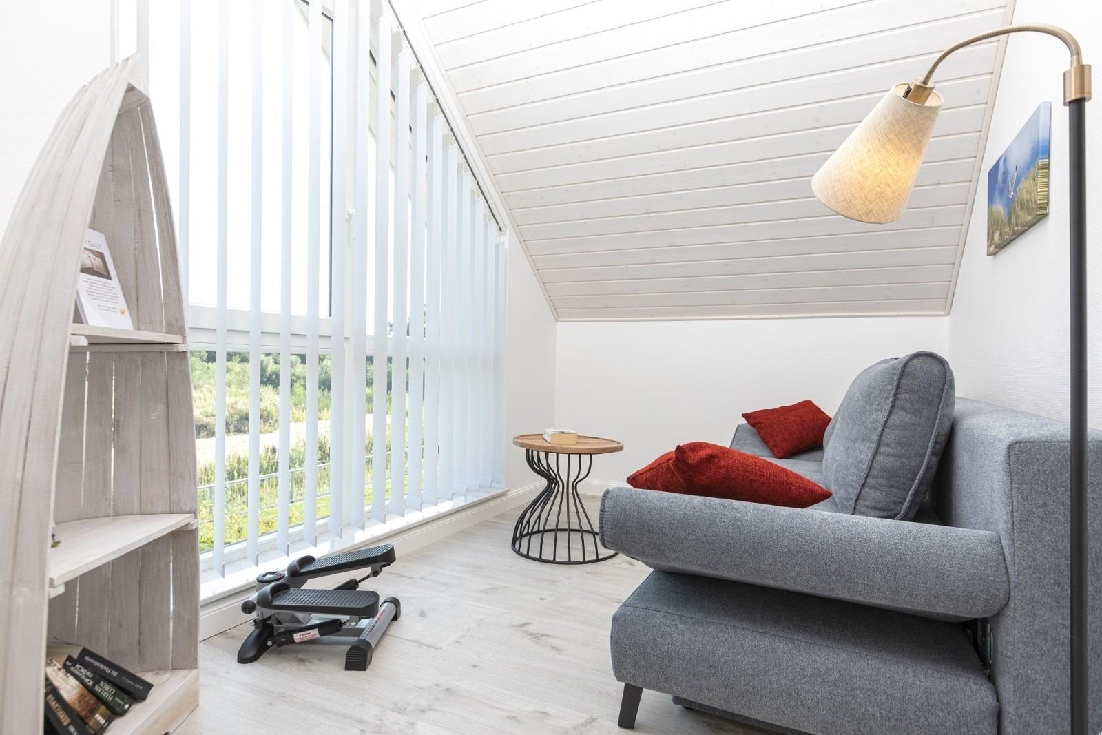 Auf der wunderschönen Galerie befindet sich noch eine bequeme Schlafcouch für weitere