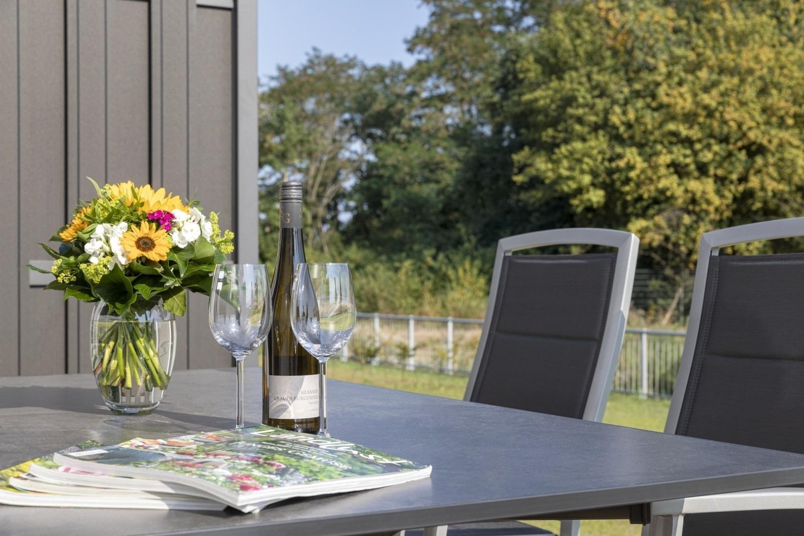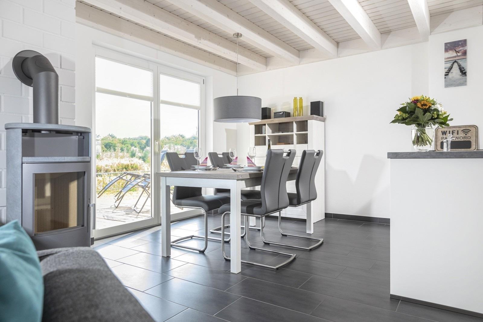 Nach dem Cool Down finden Sie im Wohnzimmer, ausgestattet mit Fernseher, kostenlosem WLAN (Highspeedinternet über Glasfaseranschluss), einem gemütlichen Ofen und einer bequemen Couch, ein ruhiges Plätzchen, um mit einem der vorhanden Bücher und einer Tasse Tee, Kaffee oder einem Glas Wein so richtig die Seele baumeln zu lassen. Oder aber Sie verlegen Ihr persönliches Entspannungsritual auf die wunderschöne Terrasse mit qualitativ hochwertigen Möbeln.