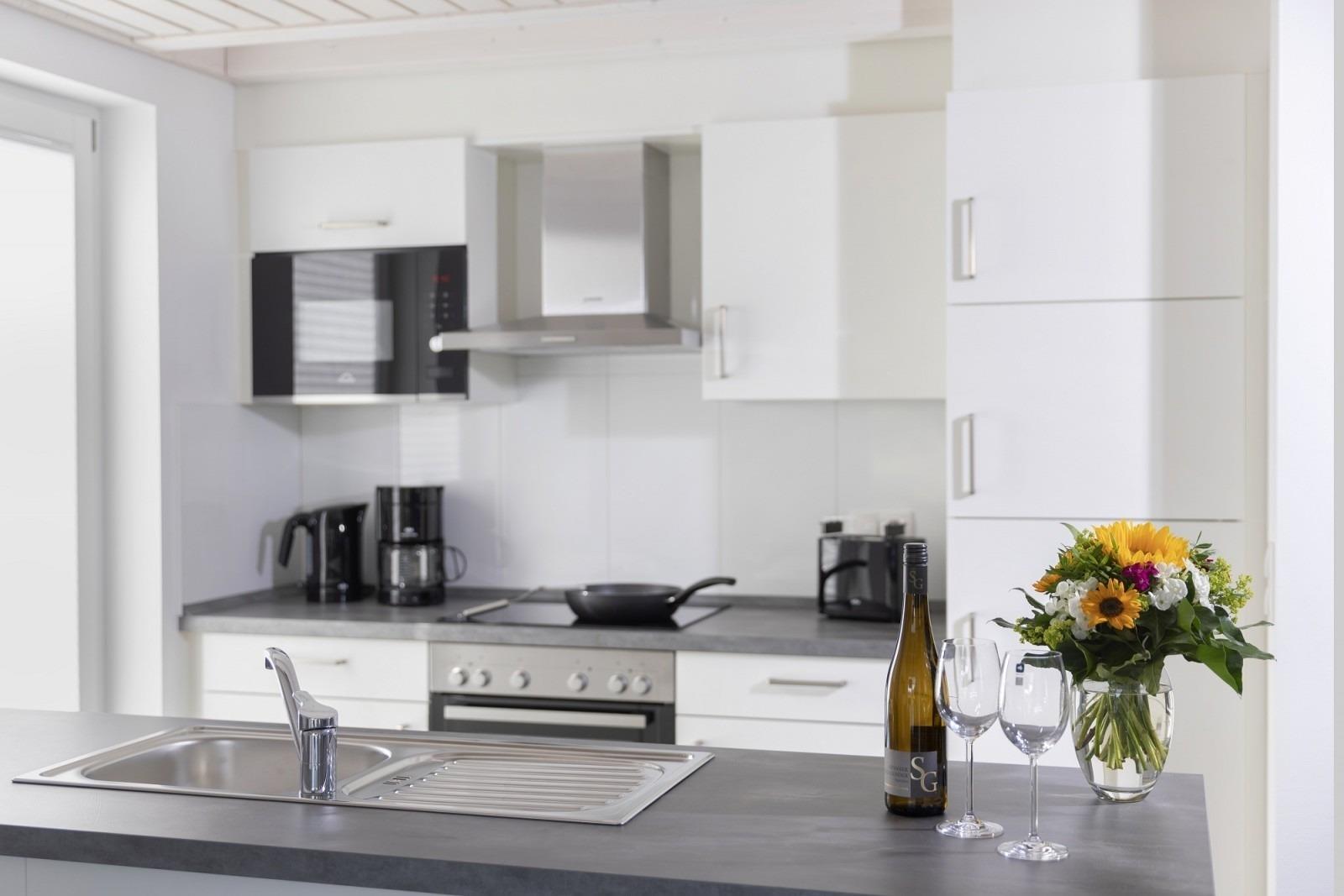 Kochen Sie in geselliger Runde oder alleine eines Ihrer Lieblingsgerichte, denn die offene Küche ist großzügig mit allem ausgestattet, was ein Gourmetherz höher schlagen lässt. Dazu zählen u.a. ein Ceranfeld, Backofen, Kühlschrank, Mikrowelle, Toaster, Kaffeemaschine, Mixer, gängige Gewürze und für das bequeme Aufräumen danach, ein Geschirrspüler.