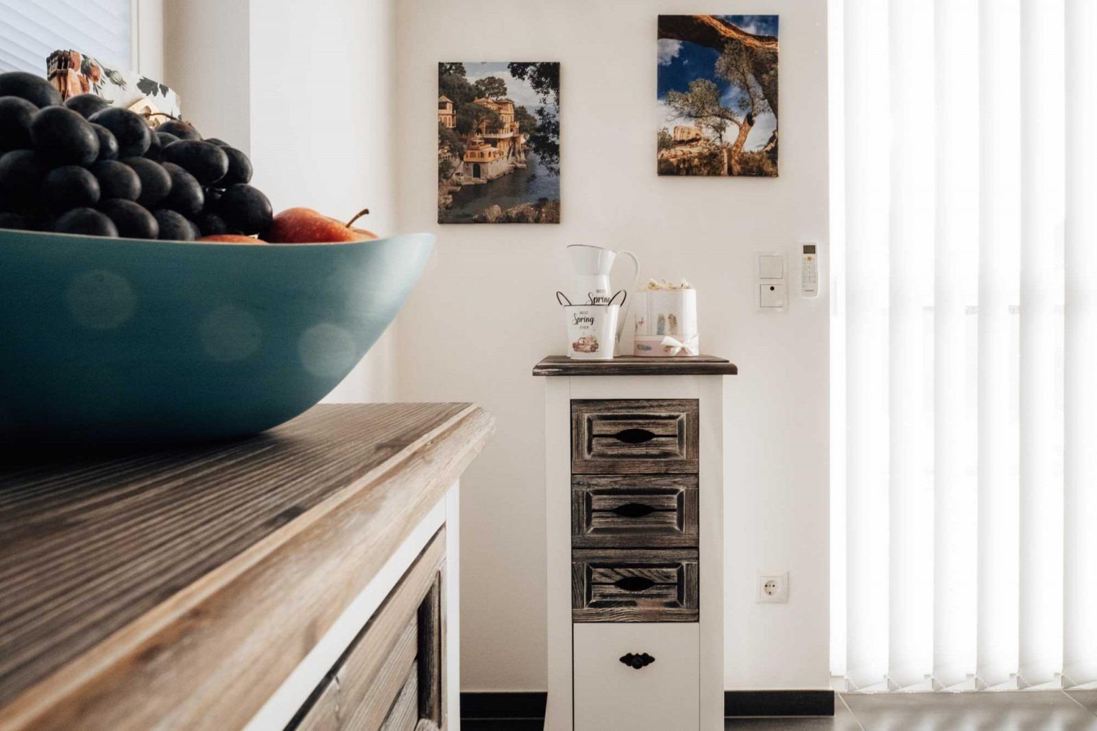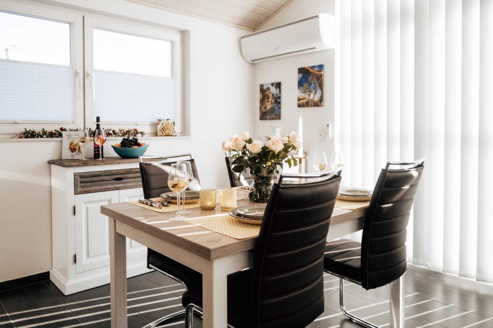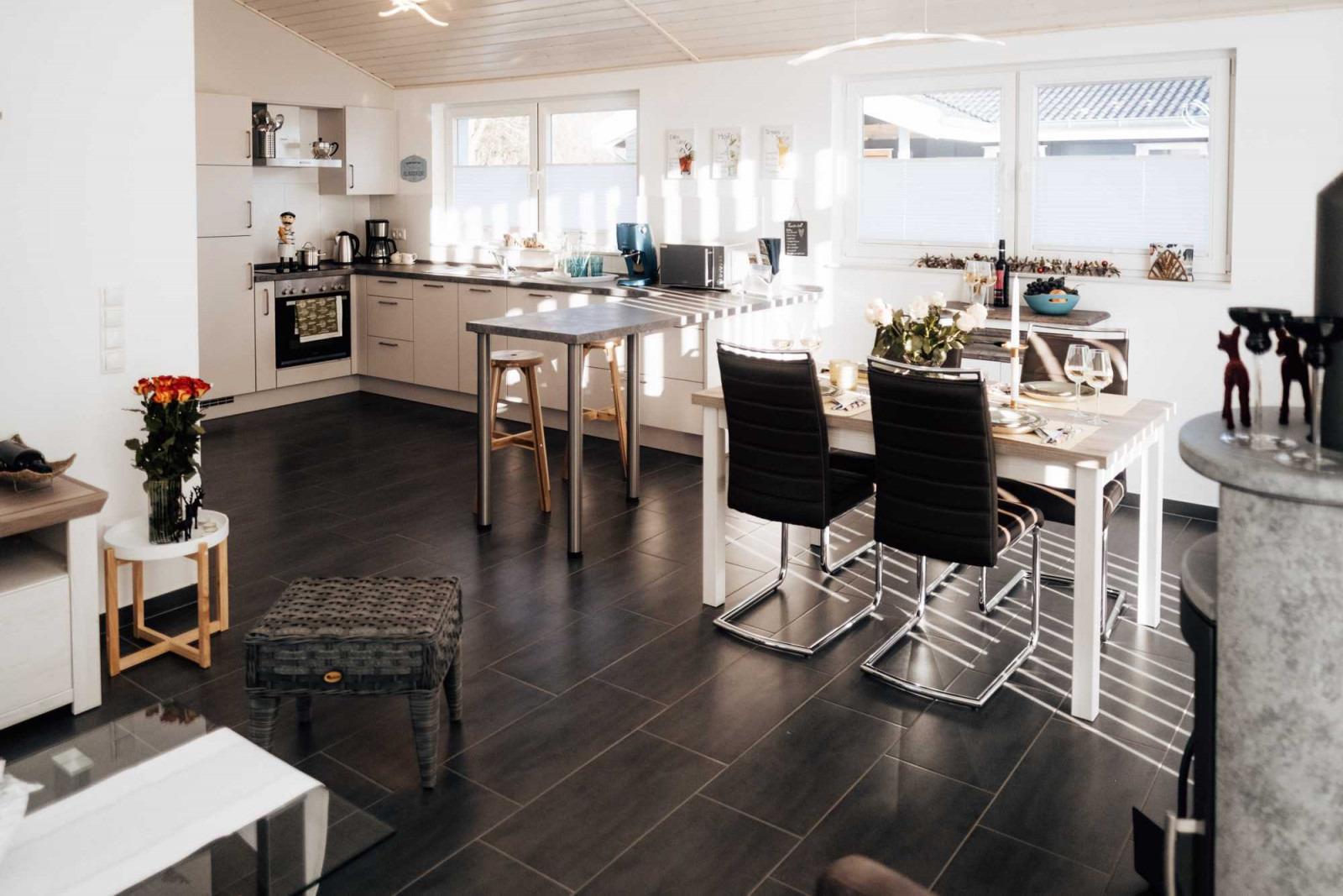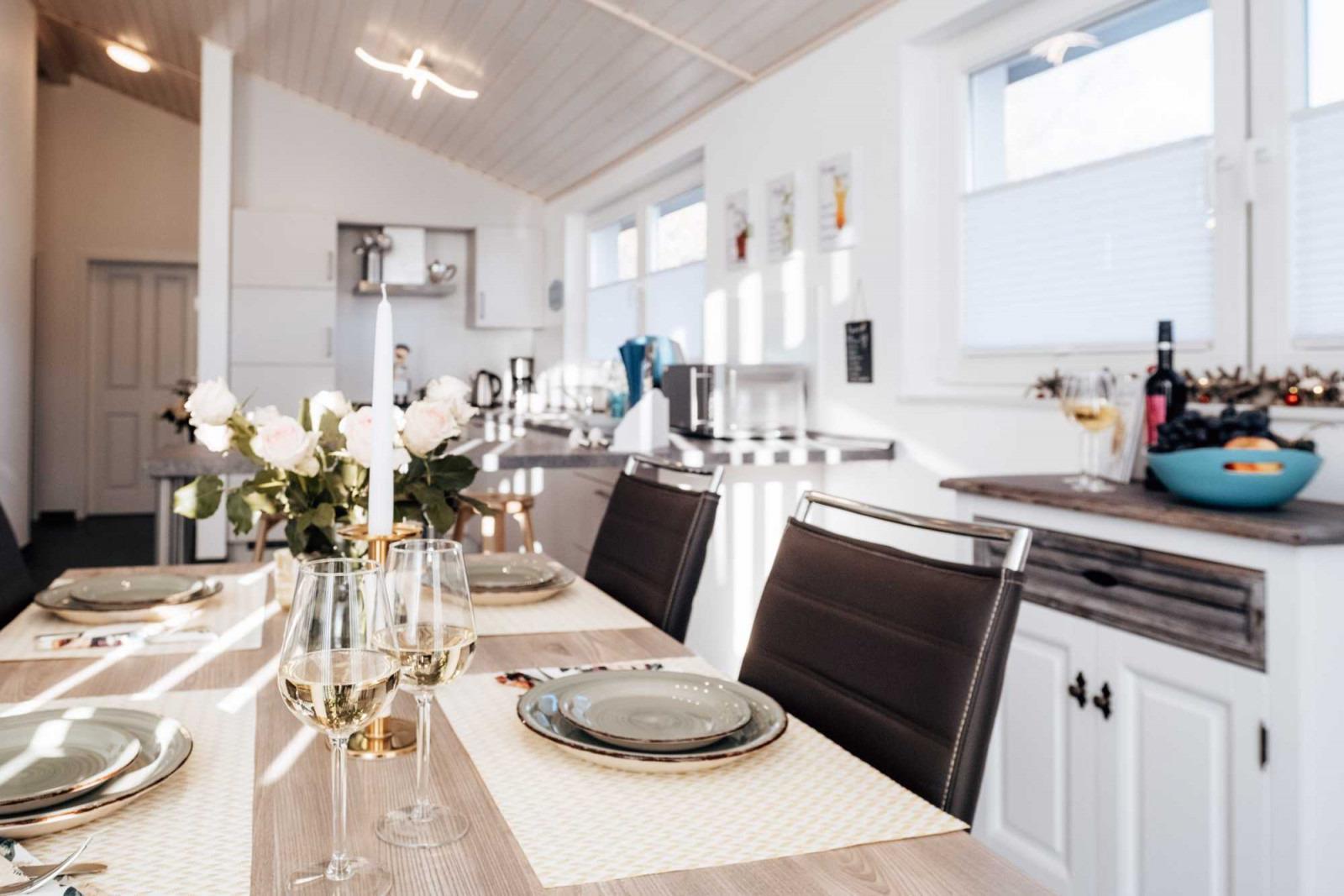 Gönnen Sie sich erholsame Tage auf 78 m² für bis zu 4 Personen. Mit einem schönen Frühstück, zubereitet in der voll ausgestatteten und offenen Küche, starten Sie gestärkt in den Tag. Der lichtdurchflutete Essbereich überzeugt mit liebevollen Details und bietet Platz für 4 Personen.
