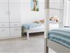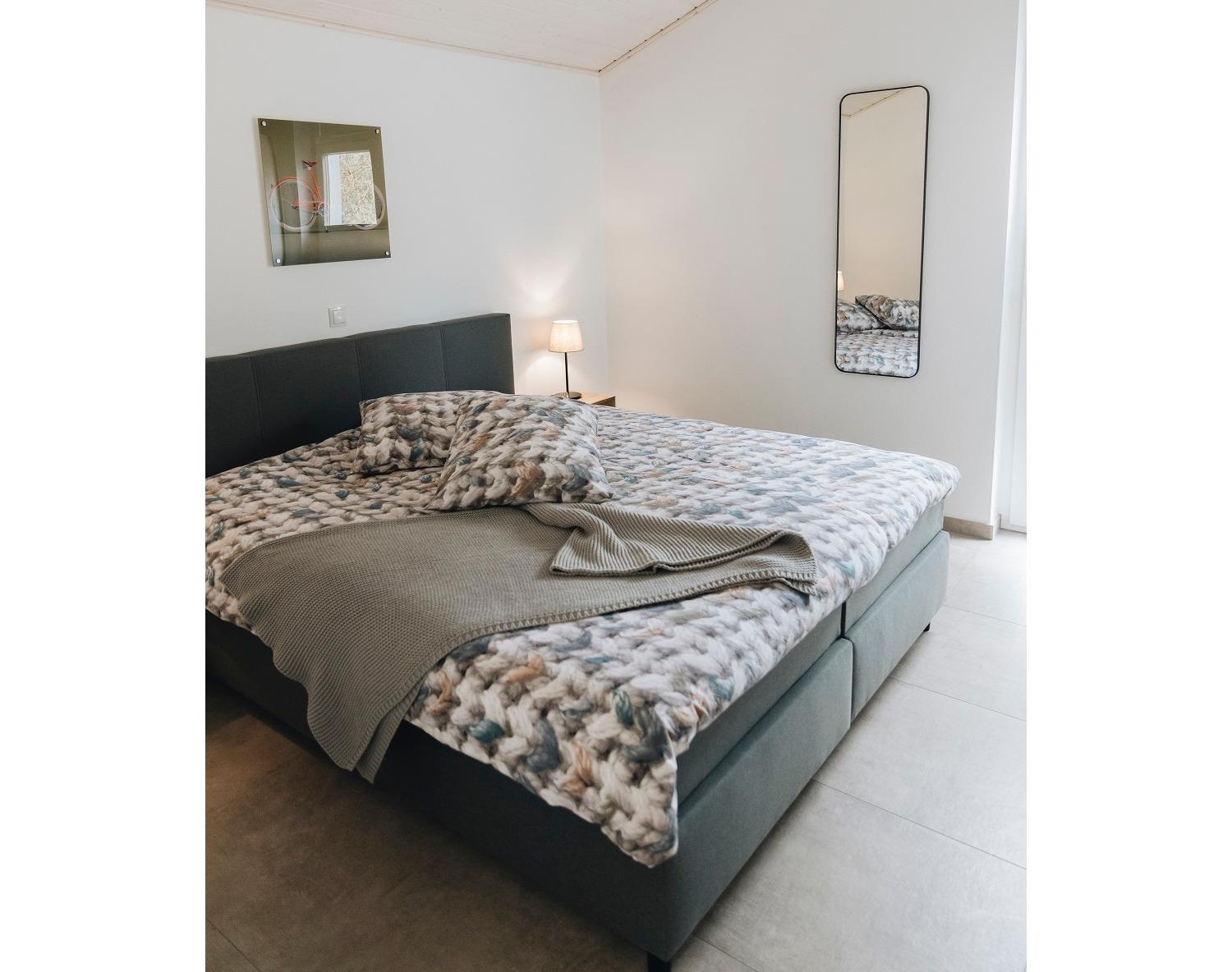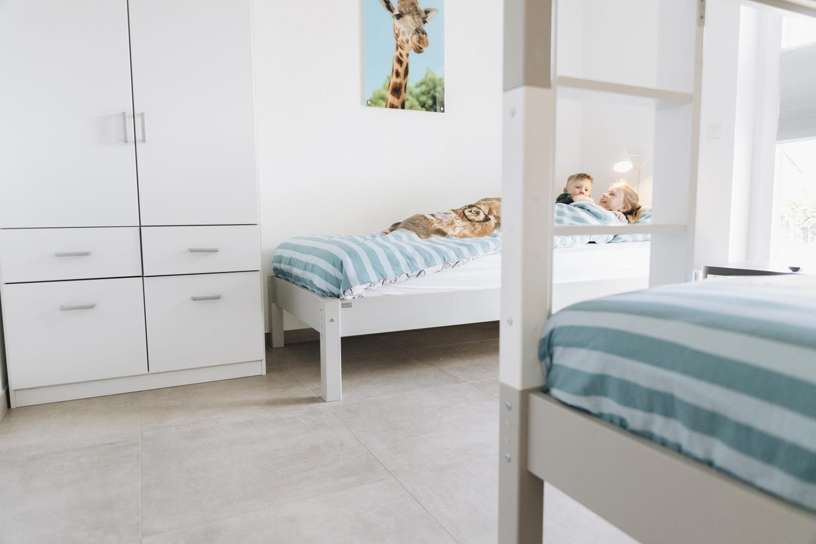 Im Haus befinden sich zwei Schlafzimmer, beide verfügen über geräumige Kleiderschränke. Eines der Schlafzimmer ist mit einem hochwertigen Boxspringbett (180 x 210 cm) *mit 2 Einzelbettdecken (je 140 x 220 cm)* ausgestattet, das andere Schlafzimmer ist mit einem Etagenbett und einem Einzelbett (je 90 x 200 cm) ausgestattet. In beiden Schlafzimmern gibt es einen Fernseher mit Internetzugang. So starten Sie gut erholt in Ihre wertvollen Urlaubstage!