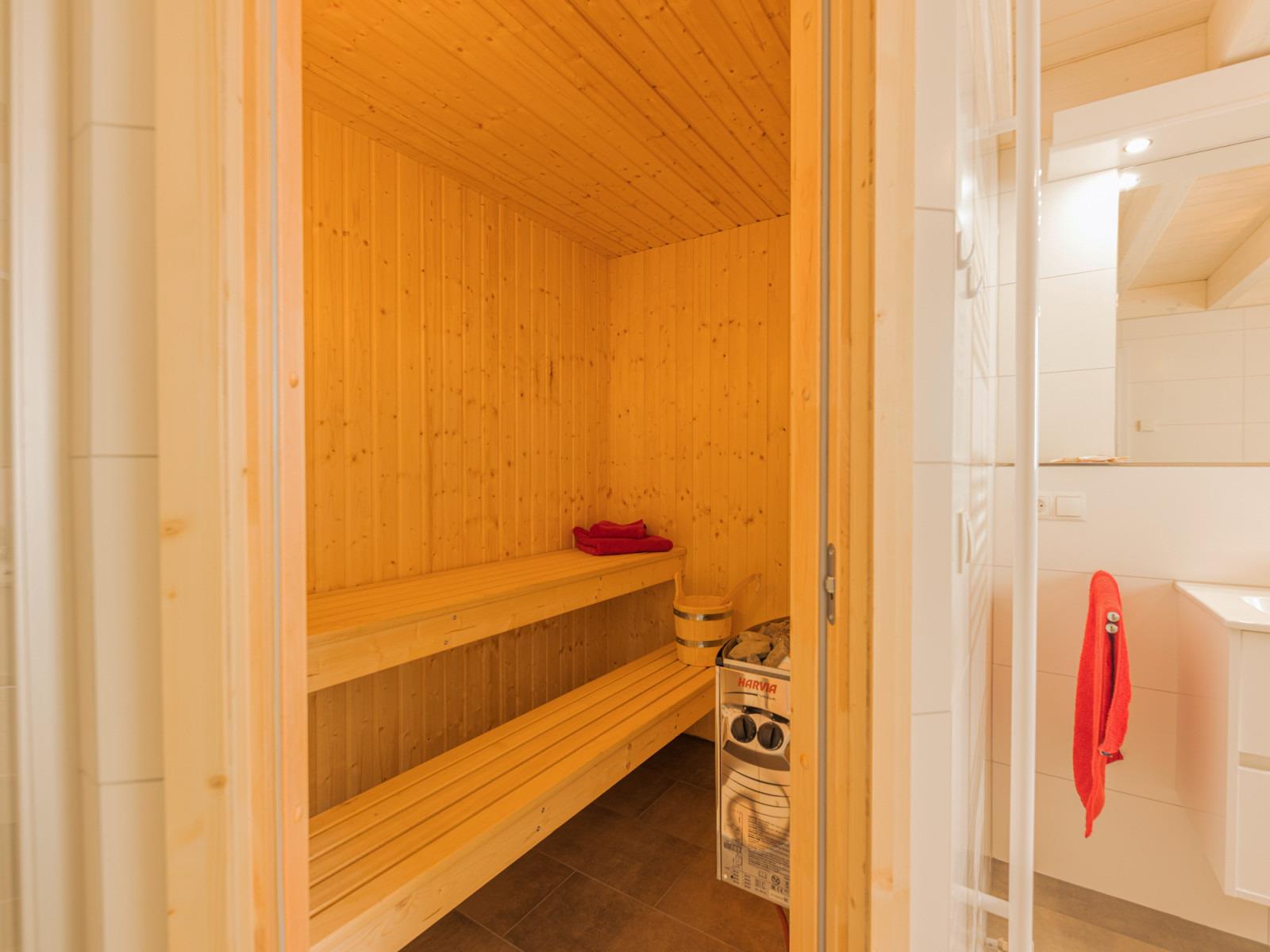 Das große, lichtdurchflutete Wellnessbad im Erdgeschoss verfügt über einen Whirlpool, eine ebenerdige Dusche und eine Sauna, in der Sie die Seele baumeln lassen können.