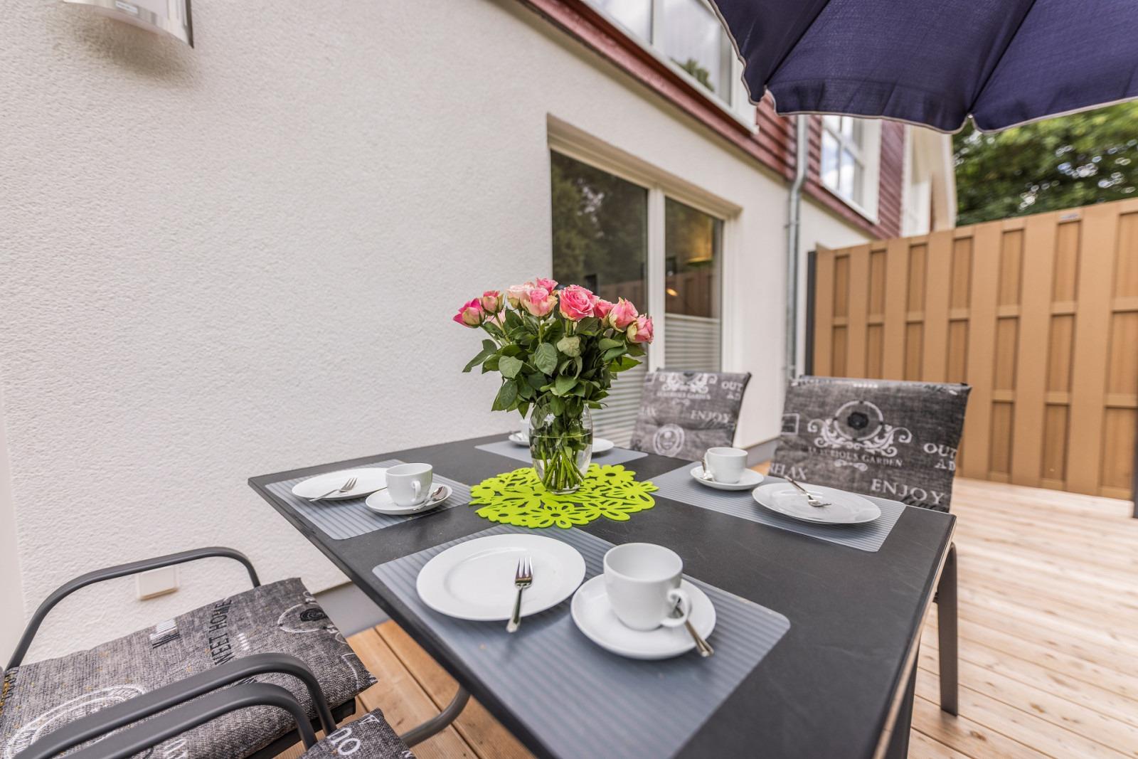 Auf der schönen Sommerterrasse mit gemütlichen Gartenmöbeln verbringen Sie einen gemütlichen Abend, bei dem Sie bei einer Tasse Tee oder einem Glas Wein die Ruhe genießen können.