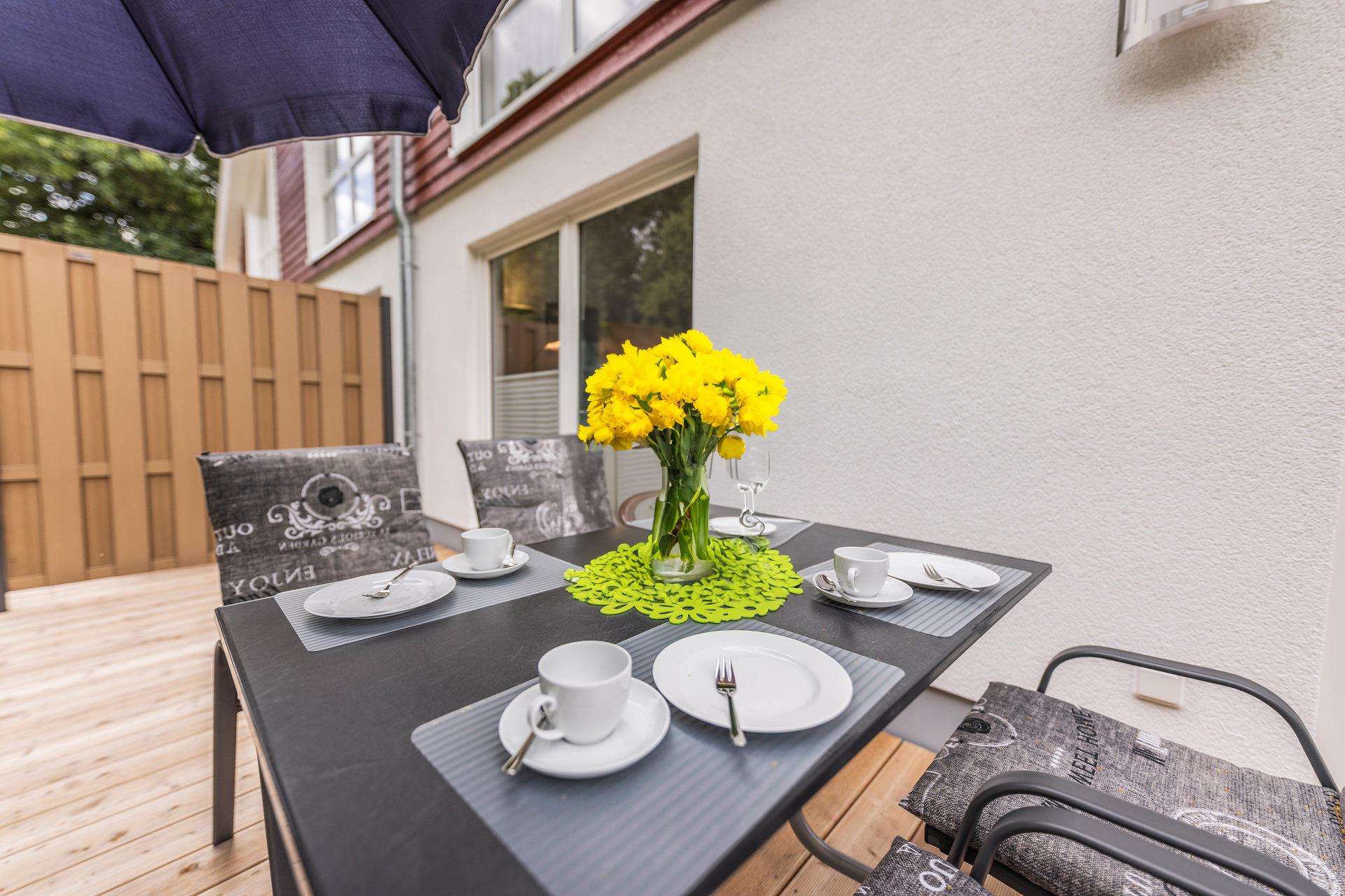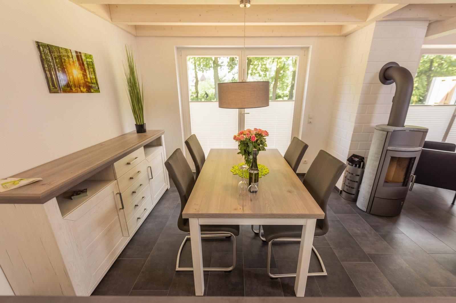 Auf 86 m² für bis zu 4 Personen genießen Sie, in der voll ausgestatteten und offenen Küche mit Senseo-Kaffeepadmaschine, starten Sie gestärkt mit einem guten Frühstück in den Tag. Der helle Essbereich bietet ebenfalls Platz für 4 Personen.
