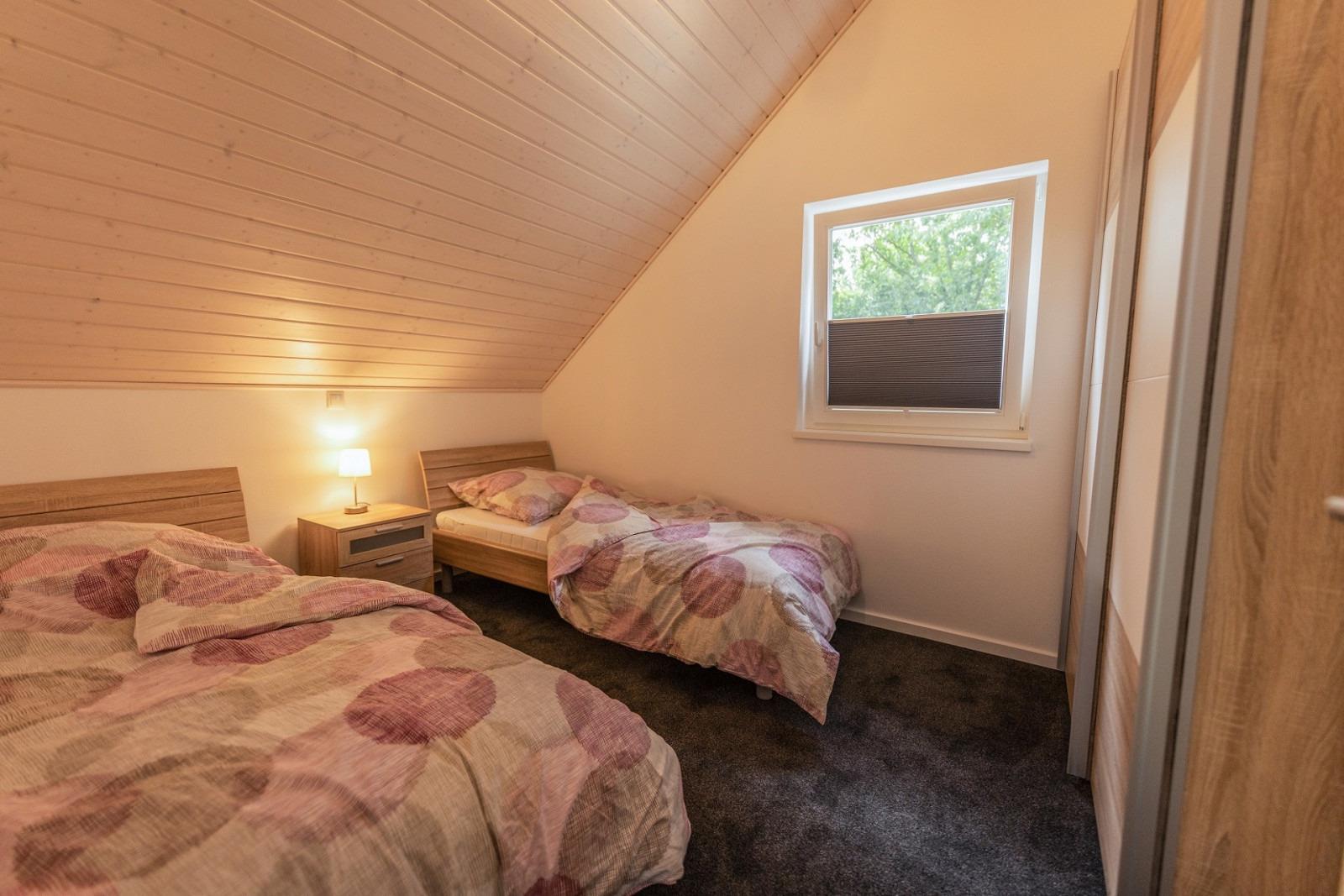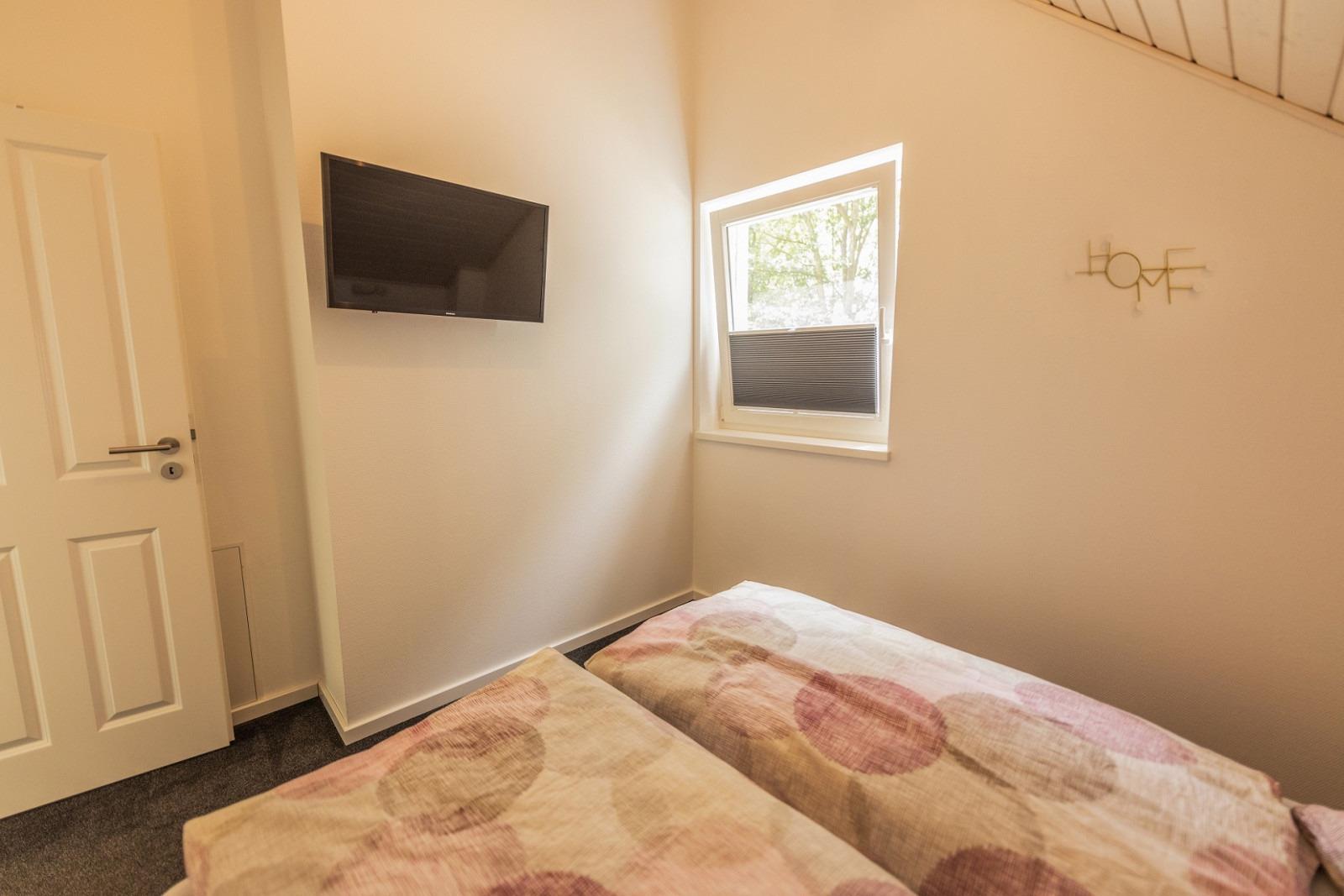 Die zwei Schlafzimmer mit geräumigen Kleiderschränken sorgen für erholsame Nachruhe. Eines der Schlafzimmer ist mit einem Doppelbett mit 160 x 200 cm, das andere Schlafzimmer ist mit zwei Einzelbetten (90 x 200 cm) ausgestattet.