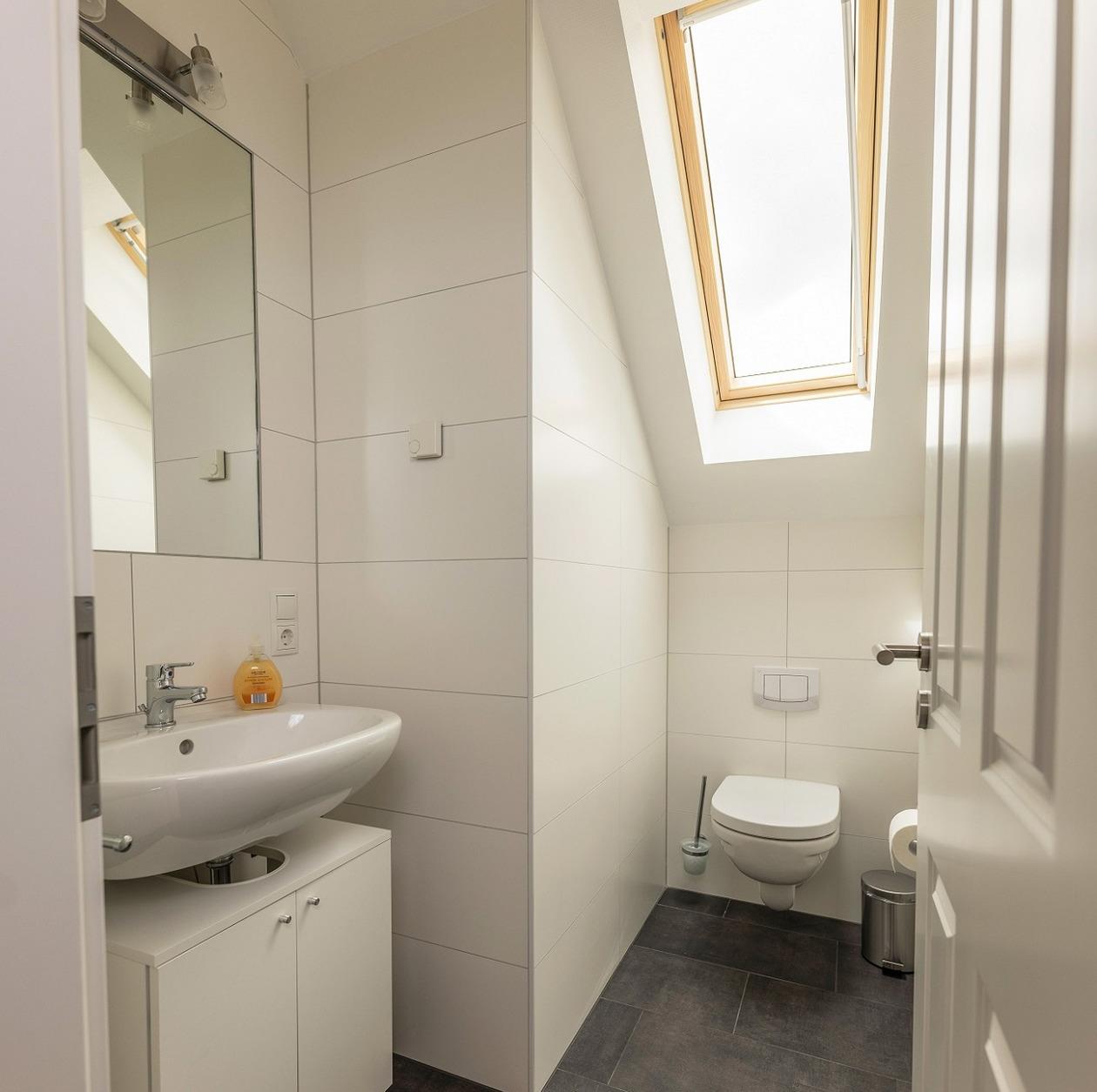 Im modernen Wellnessbad mit Sauna, bodengleicher Dusche und Whirlpool lassen Sie nach einem ereignisreichen Tag die Seele baumeln. Das lichtdurchflutete Badezimmer bietet Entspannung pur! Im Obergeschoss steht Ihnen ein separates WC mit Dusche zur Verfügung. Ein Abstellraum und Wäscheständer stehen ebenfalls zur Verfügung.