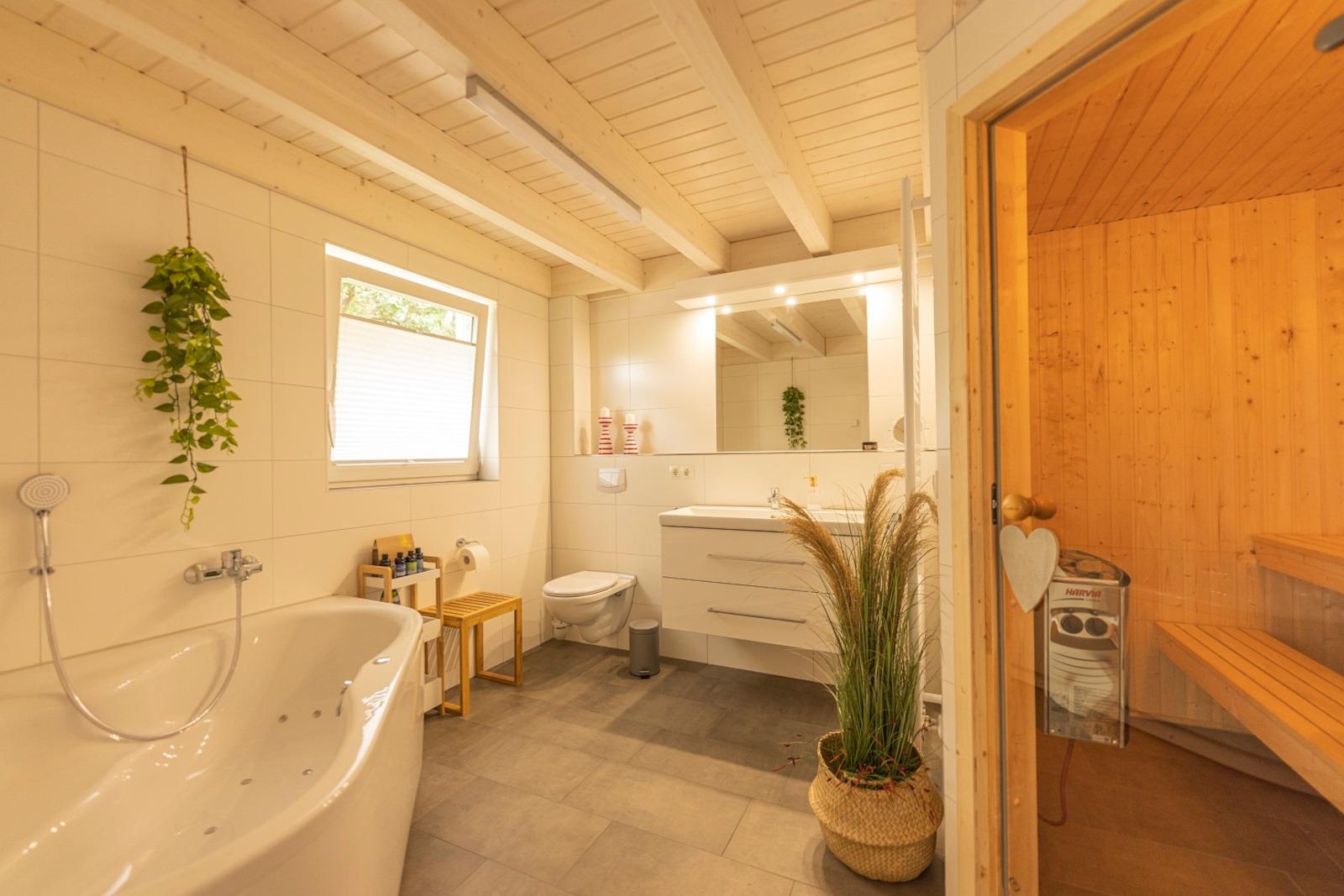 Mit unserer Villa Verde direkt am Kanal haben wir für Sie eine Oase im Grünen auf zwei Etagen zum Entspannen geschaffen. Zwei großzügige Samtsofas, eine offene Küche mit moderner Ausstattung, bodentiefe Fenster, Boxspringbetten, ein großes Badezimmer mit Wellness Sauna und Whirlpool, eine Holz–Terrasse mit bequemen Gartenstühlen und Liegen verschönern Ihnen die Urlaubstage.