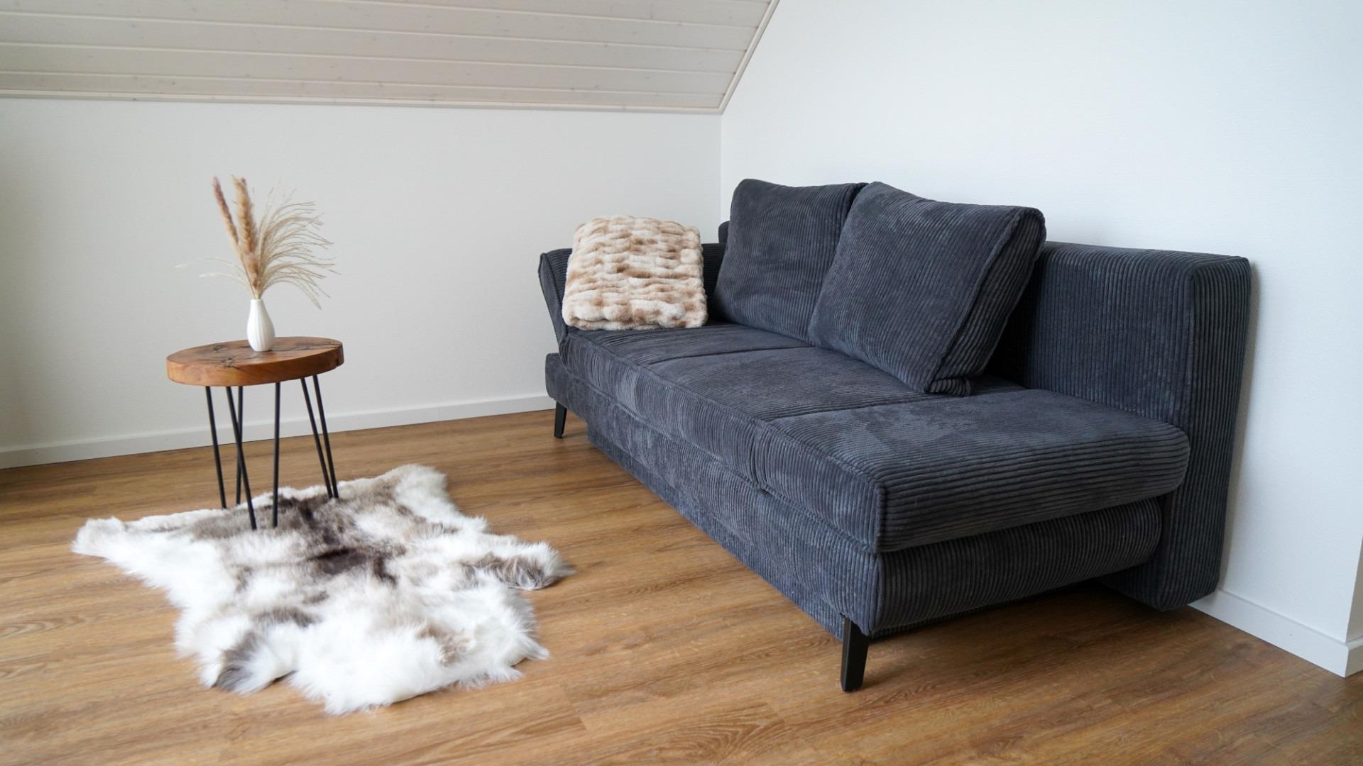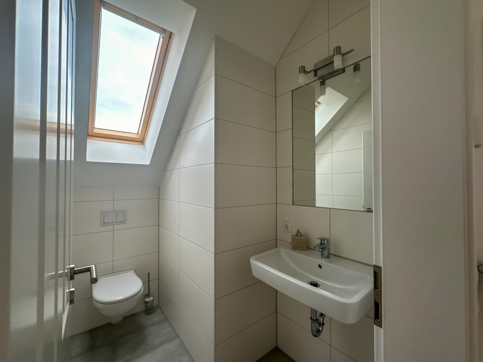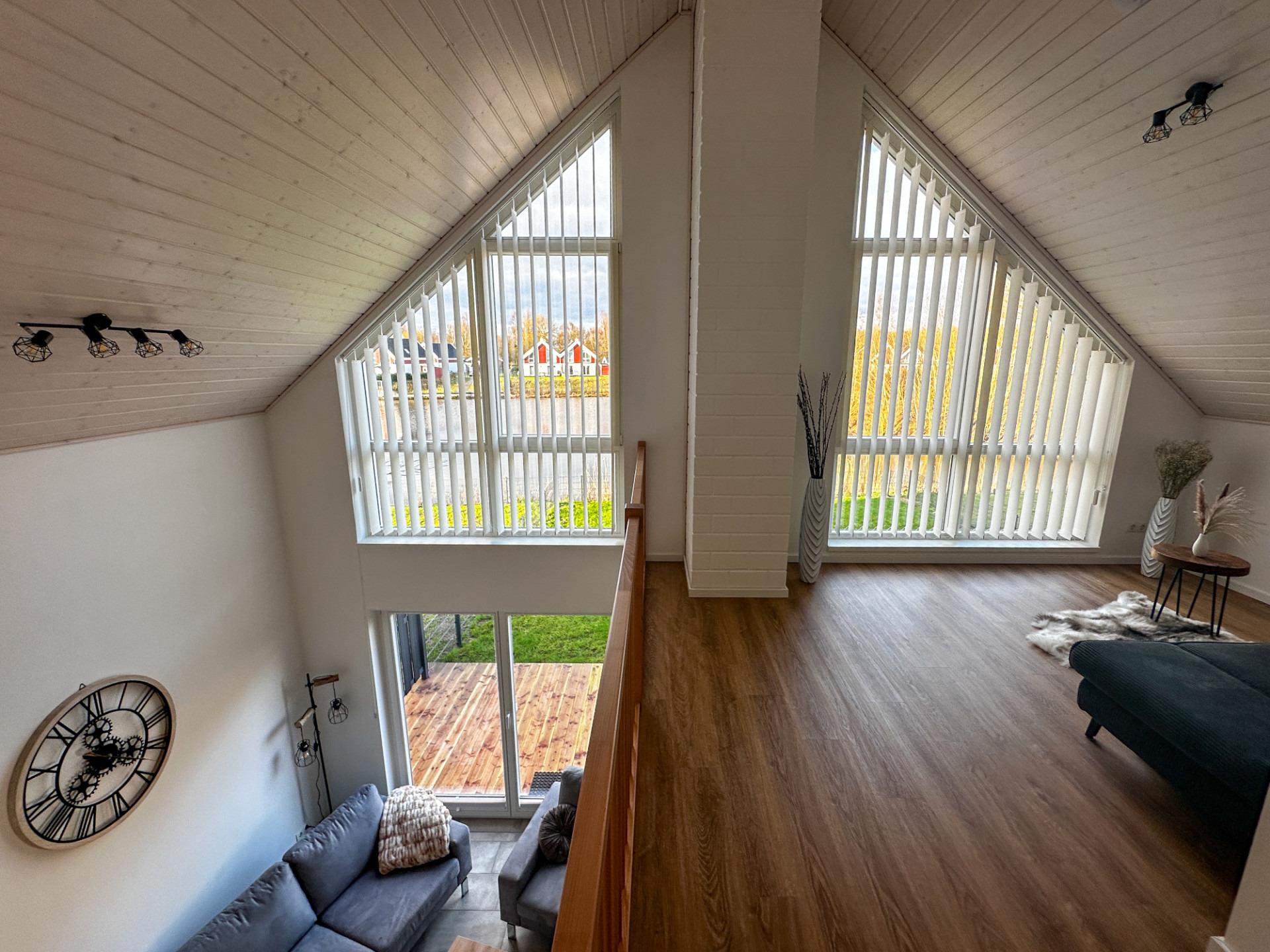 Ein zusätzliches Gäste-WC finden Sie im Obergeschoss. Dort befinden sich auch die zwei Schlafzimmer mit Doppelbetten und ein gemütliches Schlafsofa auf der Galerie.