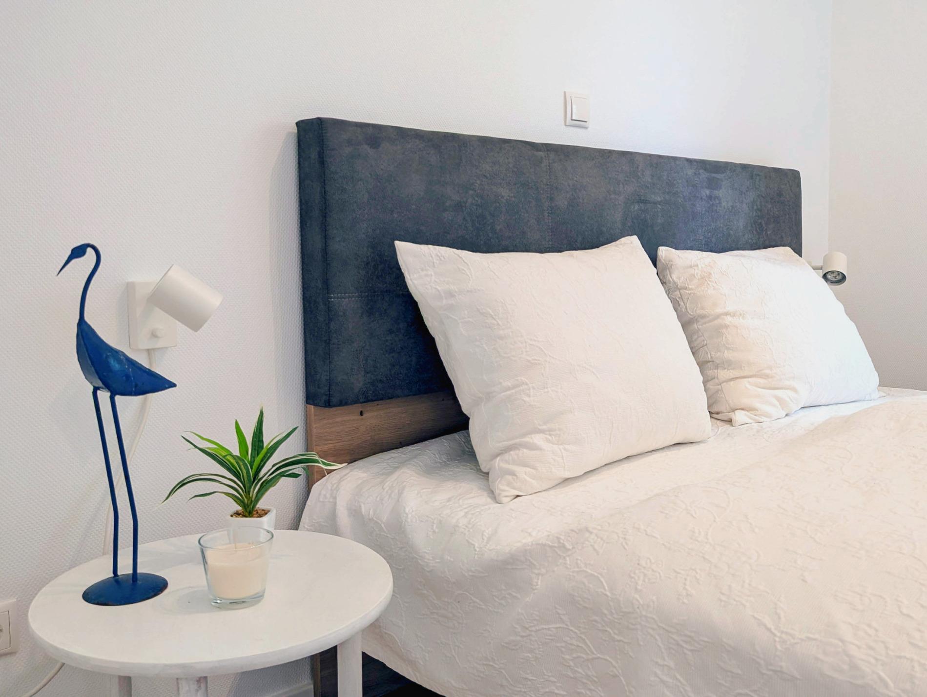 Zwei Schlafzimmer mit jeweils einem komfortablen Doppelbett, Smart-TV, großzügigem Kleiderschrank und Insektenschutz an den Fenstern, bieten höchsten Schlafkomfort und erholsame Nächte. Für eine fünfte Person kann ein zusätzliches Zustellbett bereitgestellt werden, das im Wohnzimmer Platz findet.