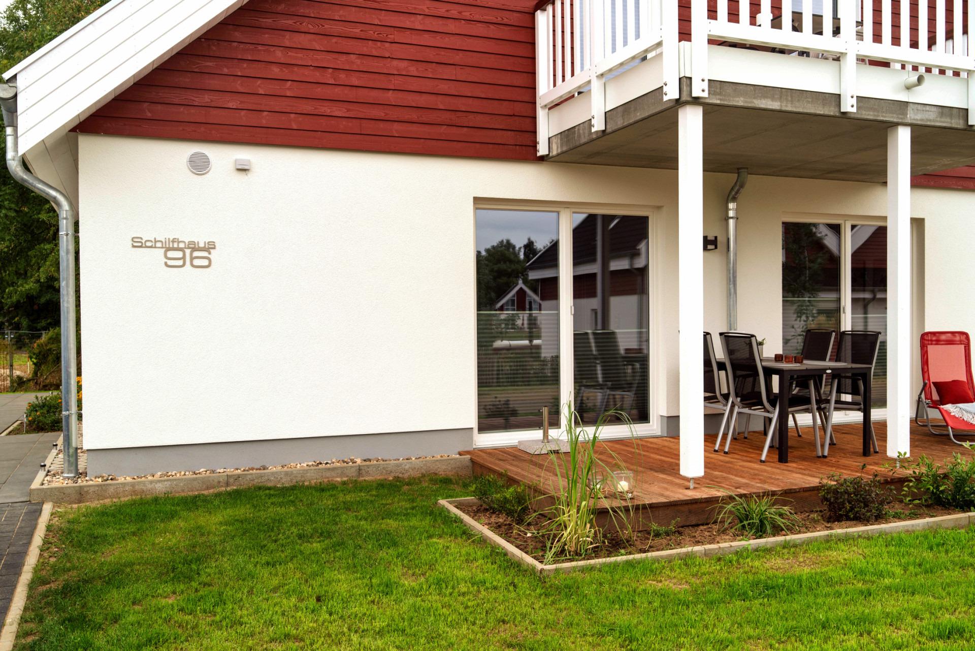 Die moderne Ferienwohnung Schilfhaus 96a liegt im Erdgeschoss und bietet auf 73 m² ein hochwertig eingerichtetes Zuhause für bis zu 4 Personen - optional kann eine 5. Person auf einem Zustellbett untergebracht werden.