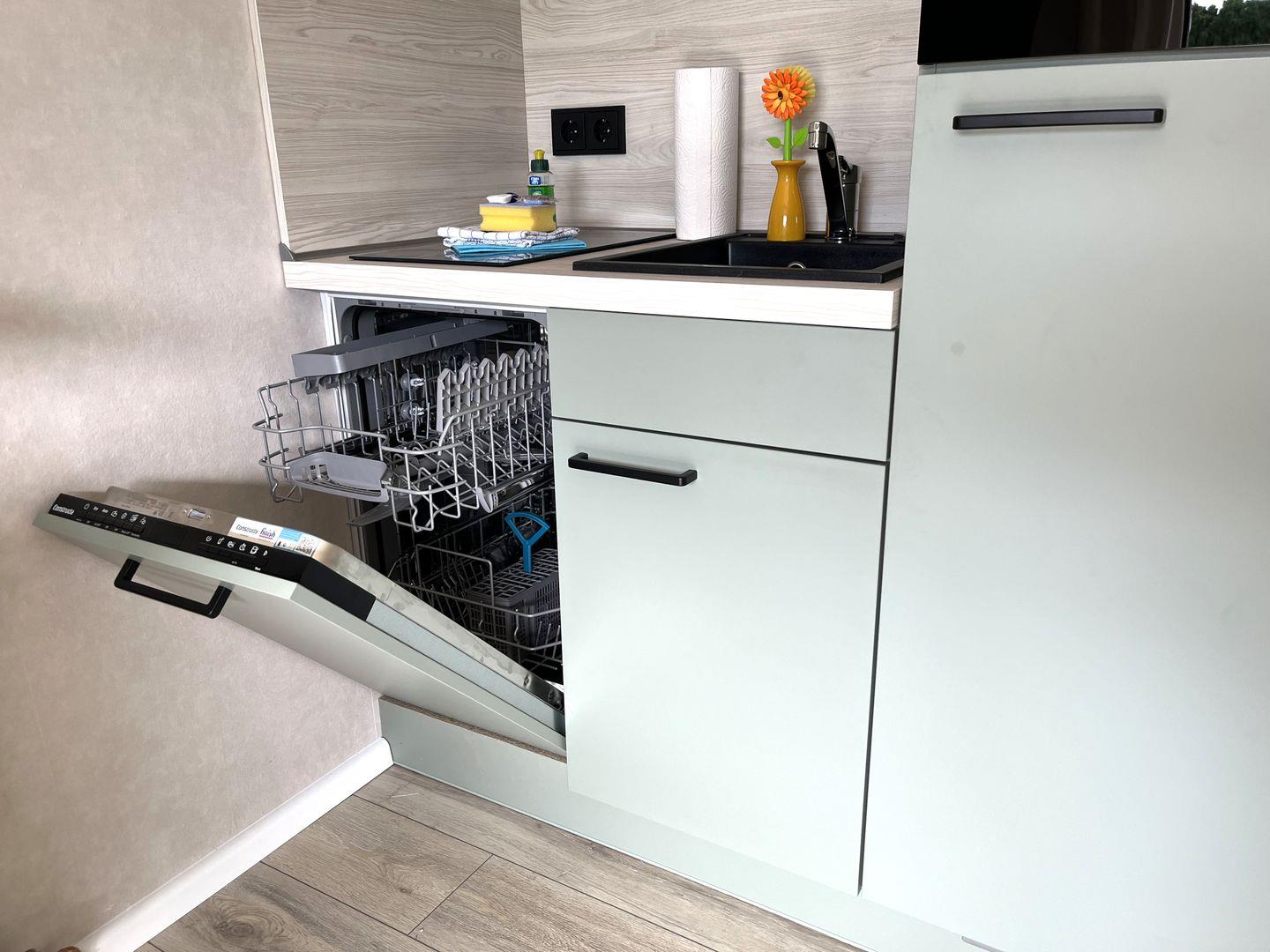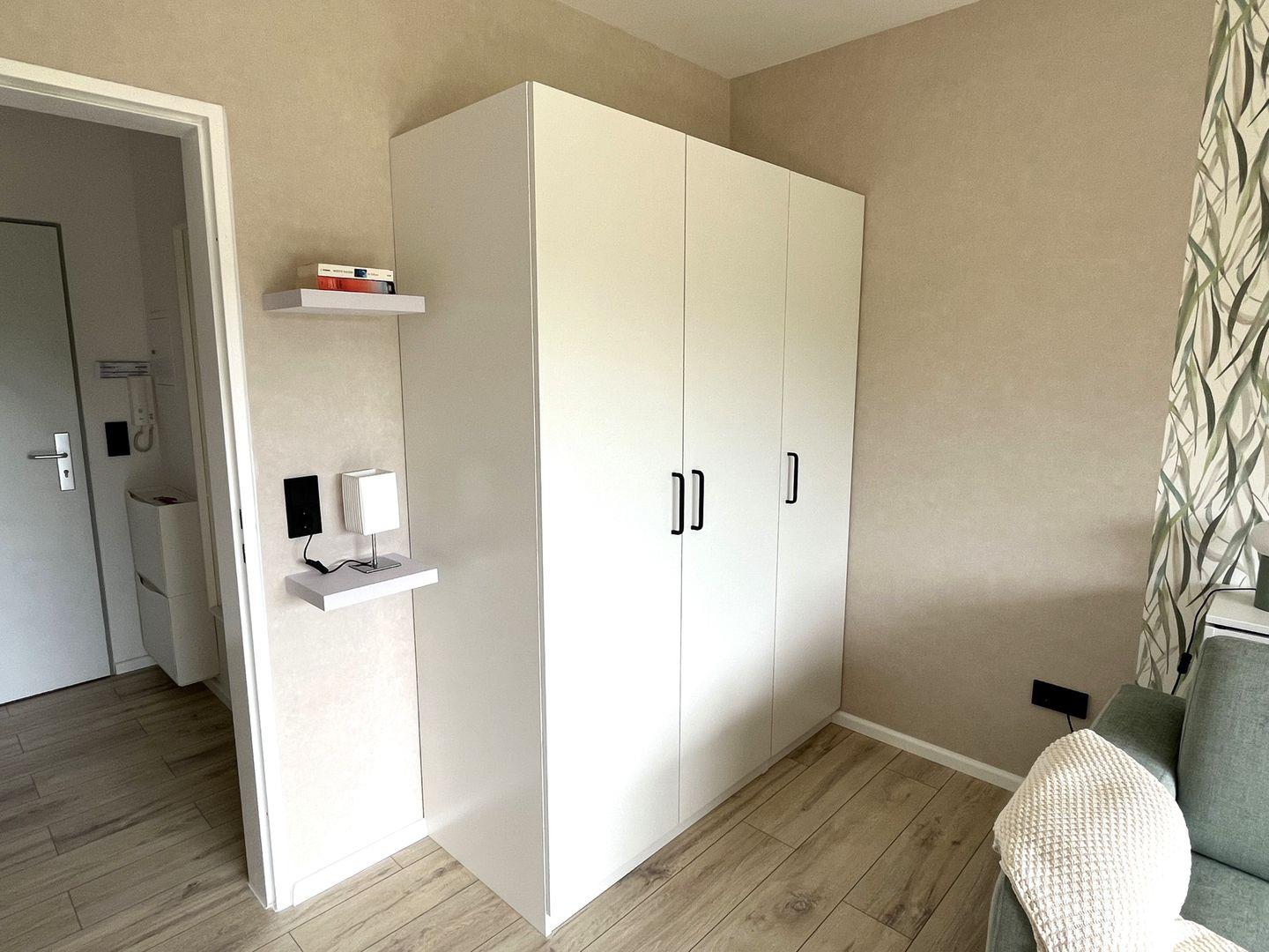Die Wohnung besteht aus einem gemütlich-modern eingerichteten Wohn-, Schlaf und Esszimmer, das mit einer praktischen Pantry-Küche inkl. Spülmaschine ausgestattet ist.