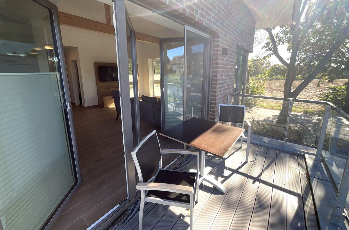 Ein weiteres Highlight ist der einladende Balkon, auf dem Sie mit Gartenmöbeln ausgestattet entspannte Stunden an der frischen Nordseeluft genießen können. Der zur Unterkunft gehörende Privatparkplatz bietet einen Stellplatz für Ihr Fahrzeug.