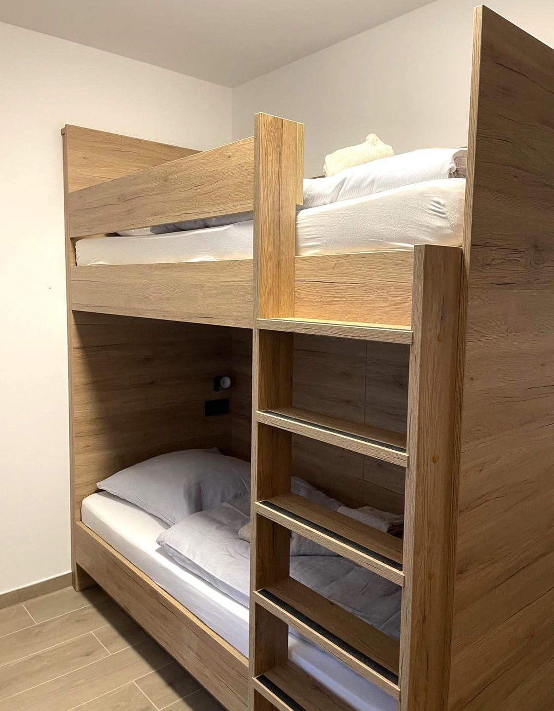 Schlafzimmer 2: Etagenbett (Maße: 2 x 90x200 cm), Flat-TV, Leselampen, Kleiderschrank, Verdunkelungsvorhänge