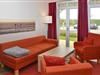 Die 60 m² große 2-Zimmer Ferienwohnung ist für bis zu 2 Personen geeignet. Besonders hervorzuheben ist die private Sauna im Badezimmer des Apartments und die sonnige Terrasse mit eigenem Strandkorb.